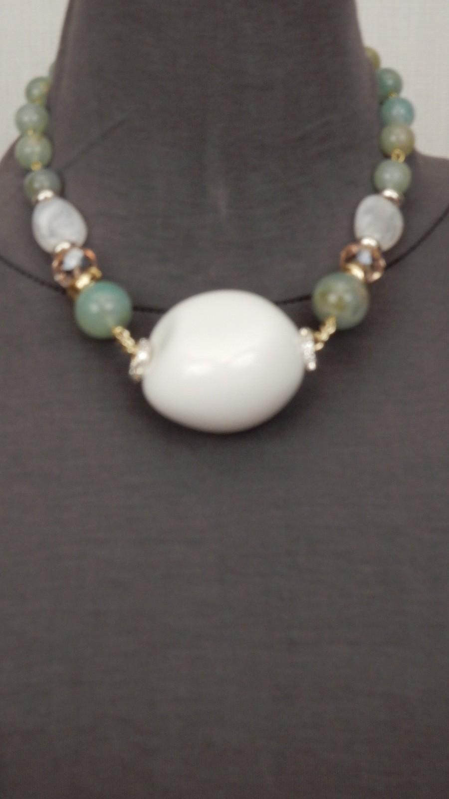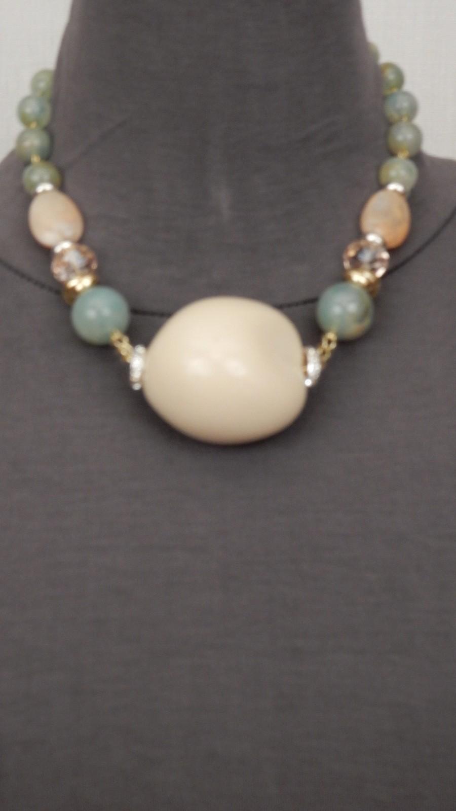 Массивная Итальянская бижутерия.Колье в виде стилизованного камня украшенного искуственными самоцветами.