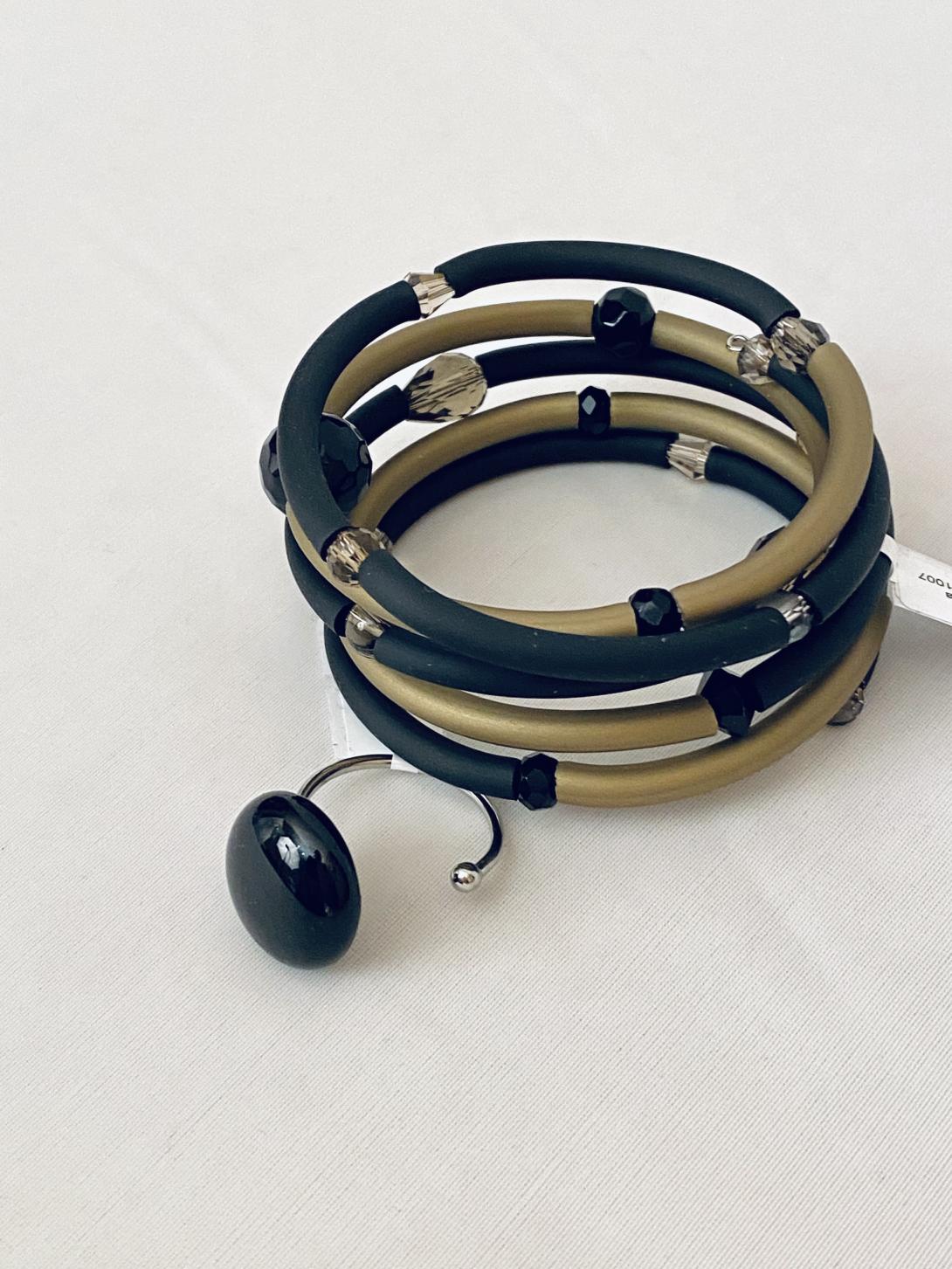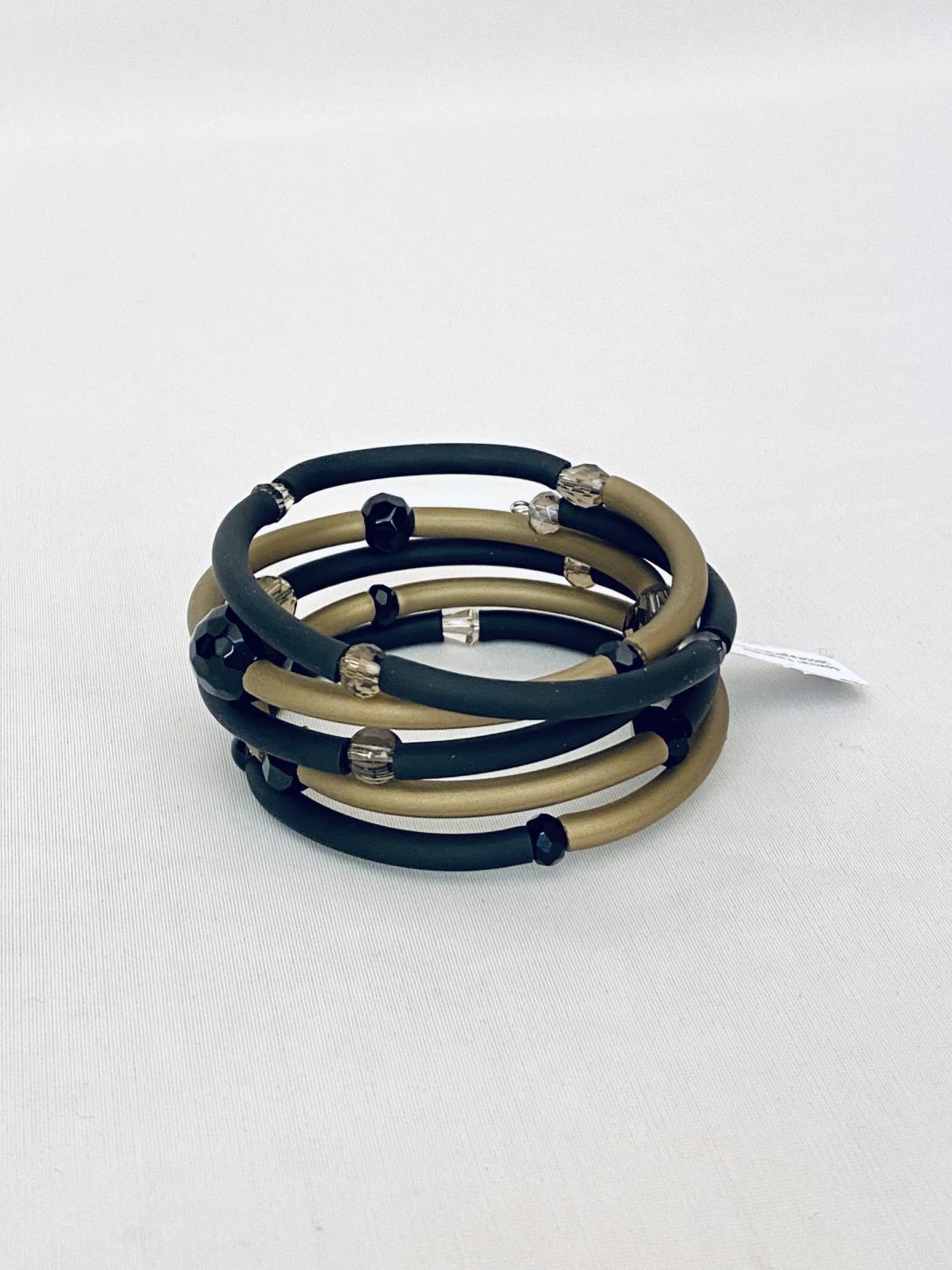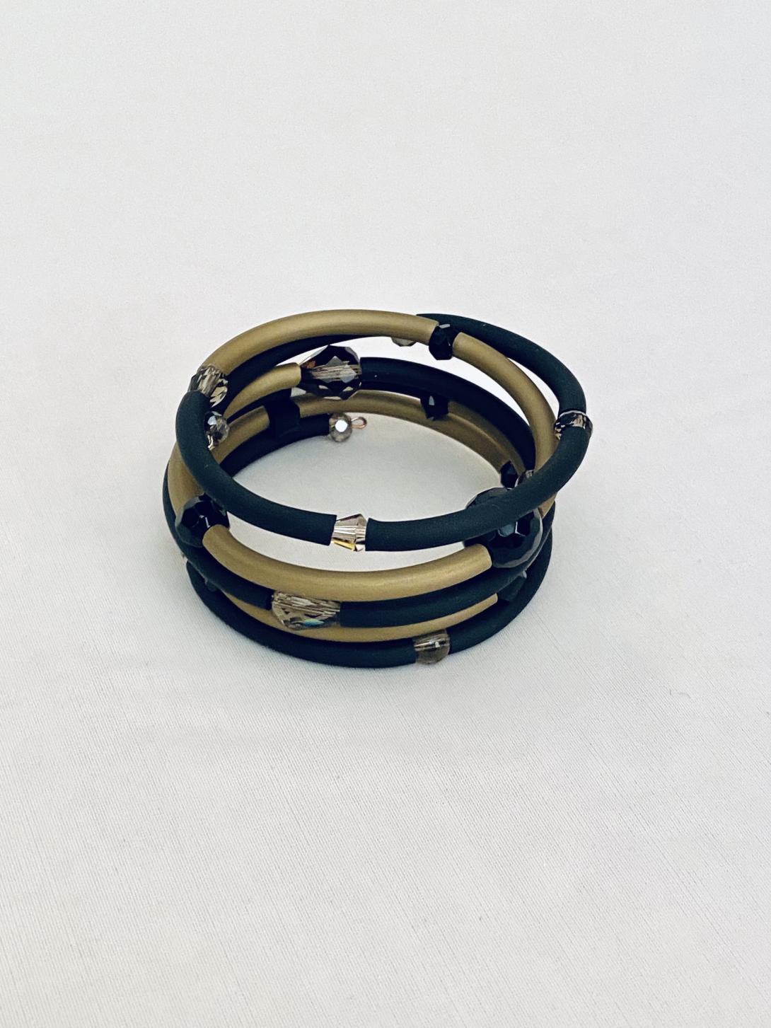 Браслет каучуковый с вставками из муранского стекла- черный/золотистый