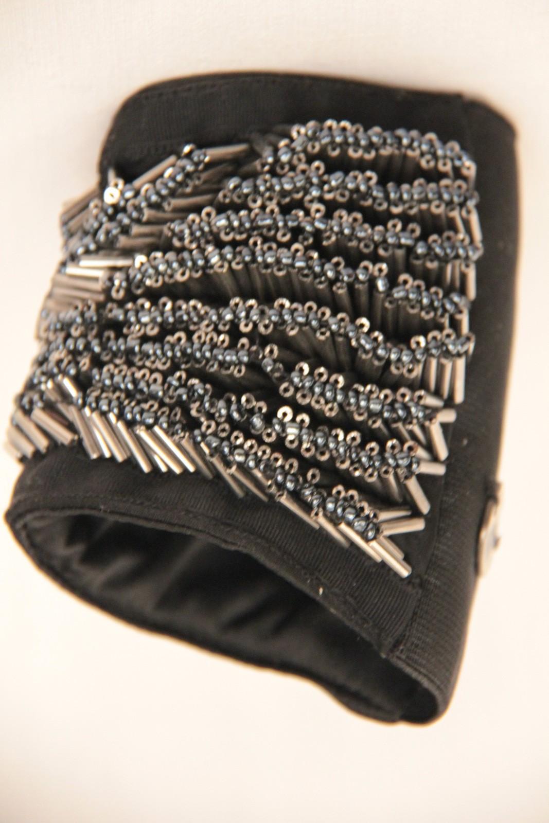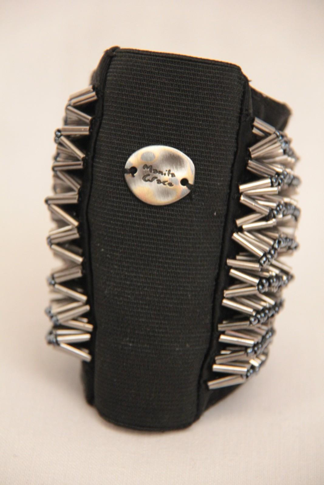 Браслет из ткани и длинного бисера ручной работы.Высота браслета 8-10 см. Для среднего запястья.