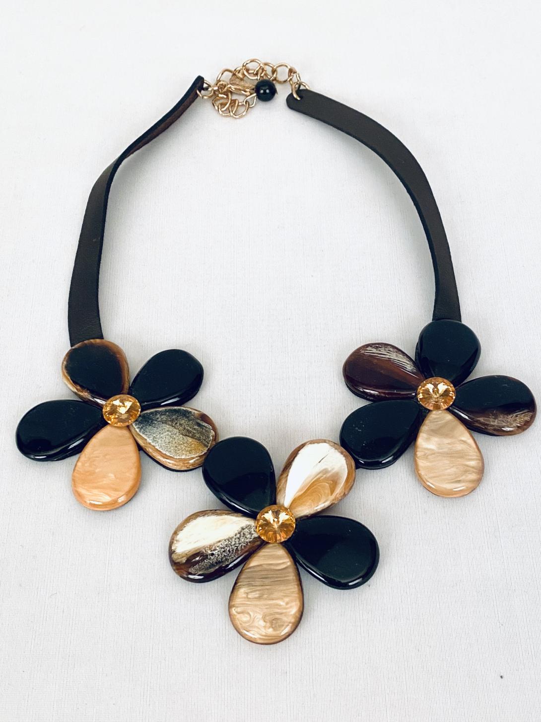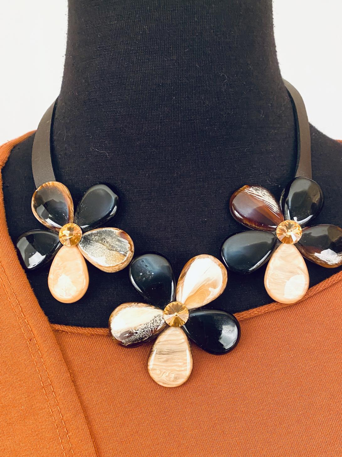 Лёгкое колье в коричнево-бежевых тонах. Это украшение прекрасно ложиться на платье спокойных тонов.