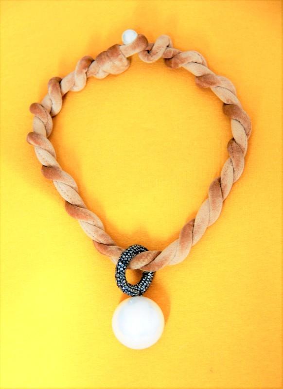 Красивое украшение в виде огромной жемчужине на мягком массивном шнурке.