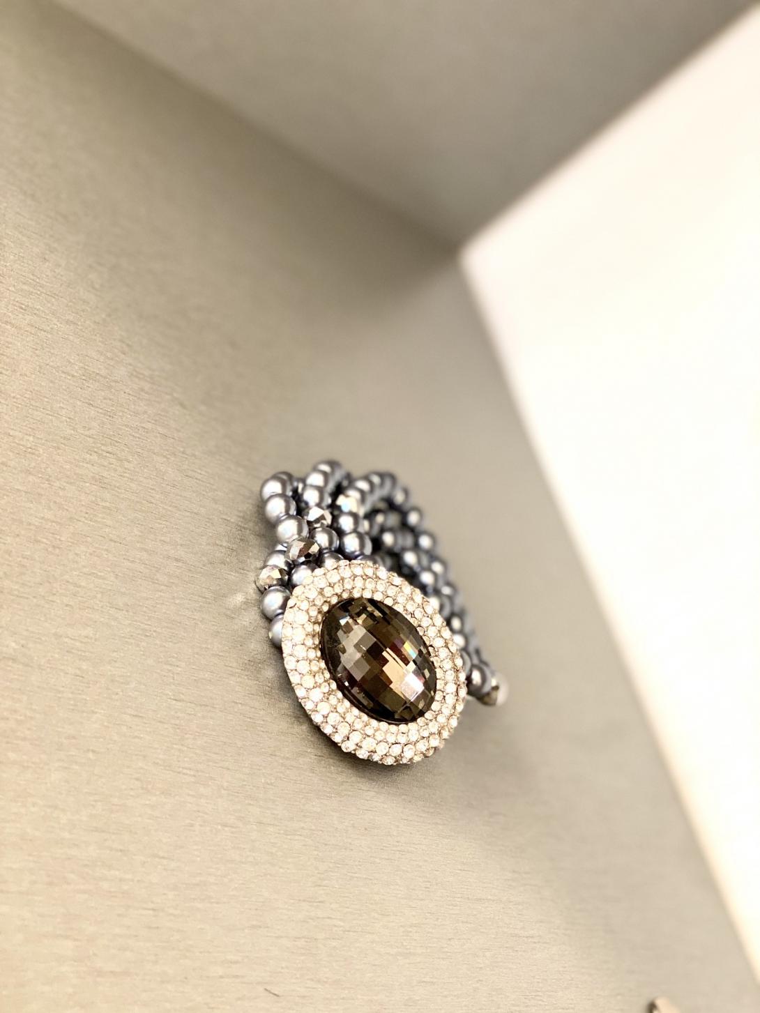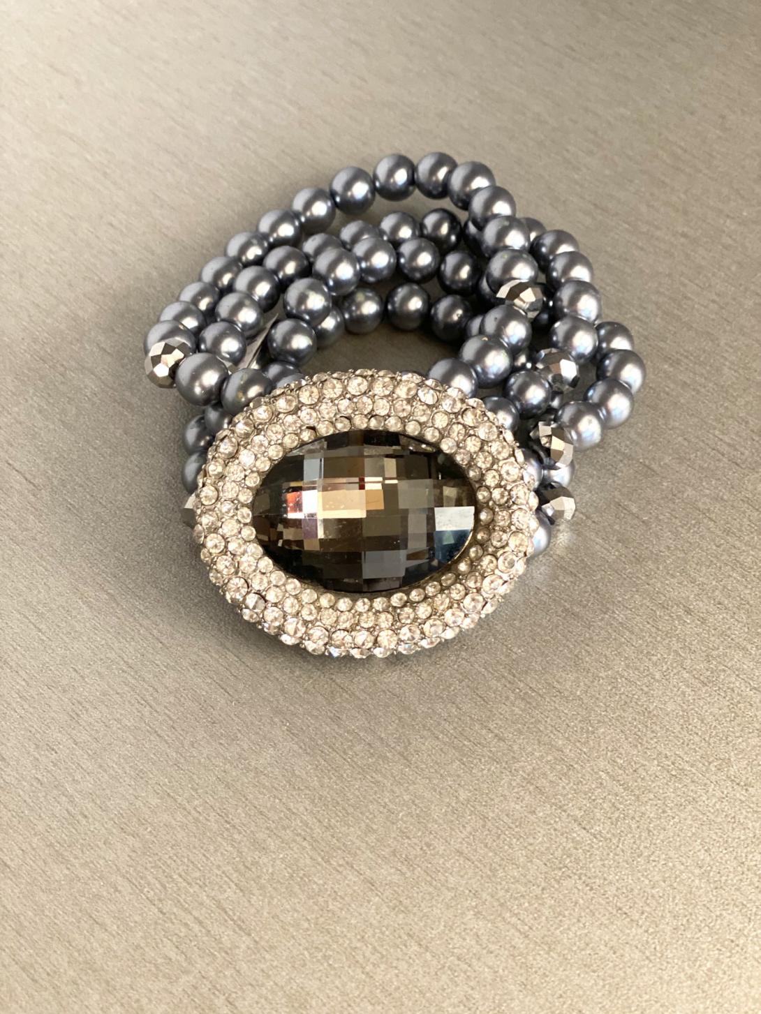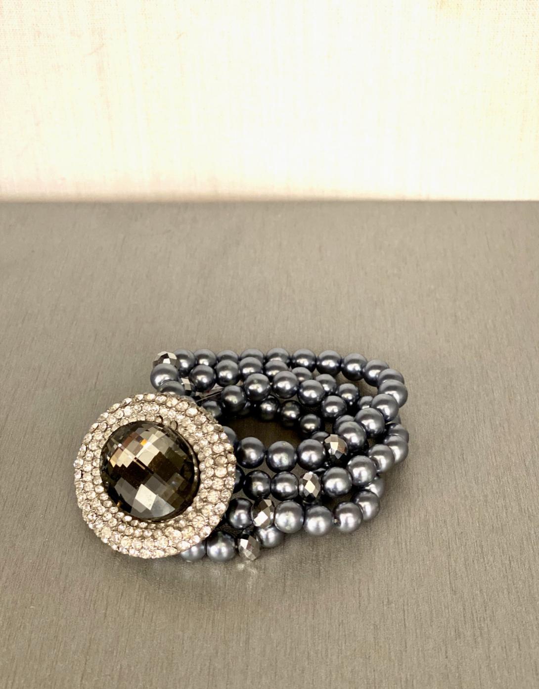 Массивный браслет из серого жемчуга. Такой аксессуар будет основным акцентов ,особенно если вы добавили его к чёрному платью.
