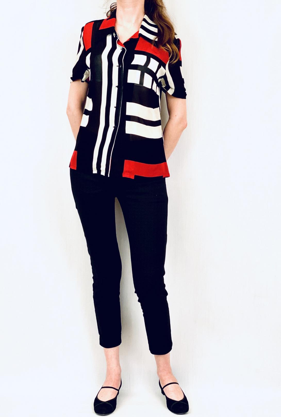 Легкая шифоновая блузка с ярким геометрическим рисунком. Блузка на пуговицах с коротким рукавом ,производство Франция.