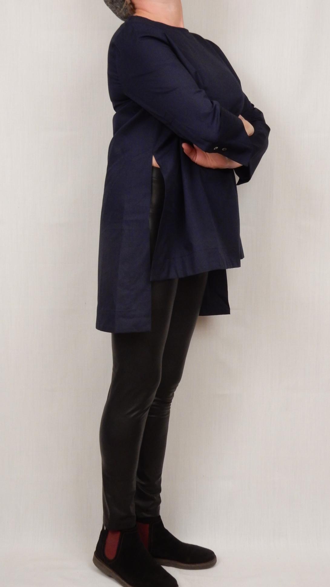 Тренд сезона удлинённая рубашка с глухой застёжкой на спине и глубокими разрезами по бокам.Рекомендуем для девушек с лёгким верхом.Сядет по фигуре идеально.