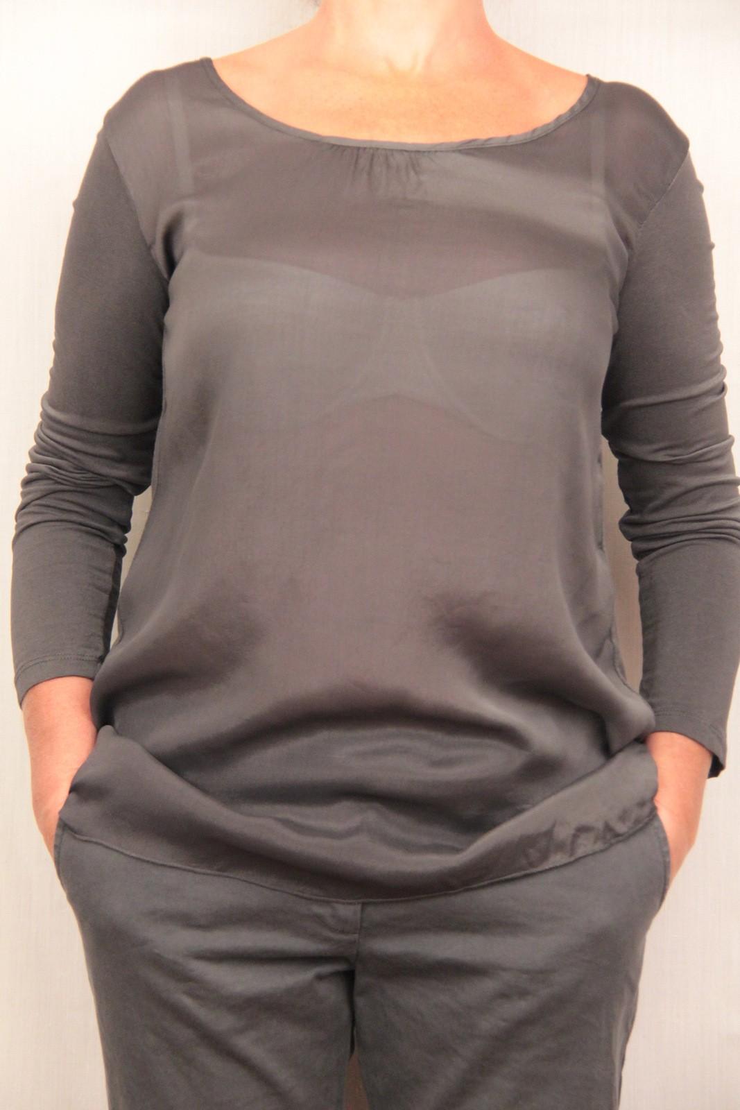 Красивый блузон с трикотажной спиной и рукавами. Размер -М (44-46).Цвет-серый.