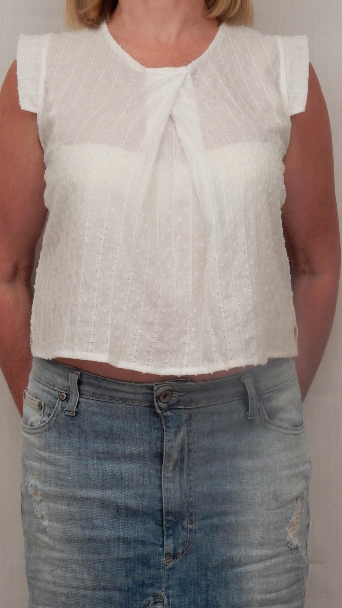 Миленькая блузка без рукавов. Комплектуется идеально с джинсами или брюками с высокой посадкой.