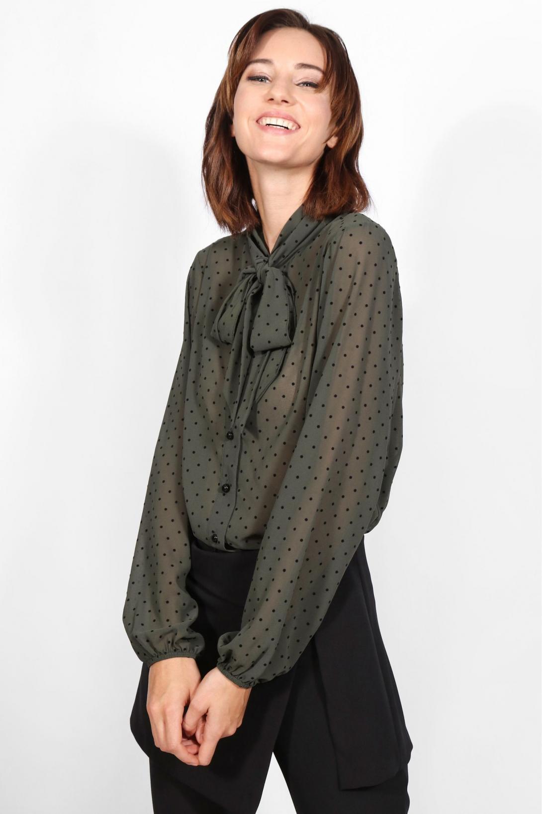 Блузка в горох подойдёт как для делового стиля так и для похода например в театр.. Блузка с красивым английским бантом придающий женственность.