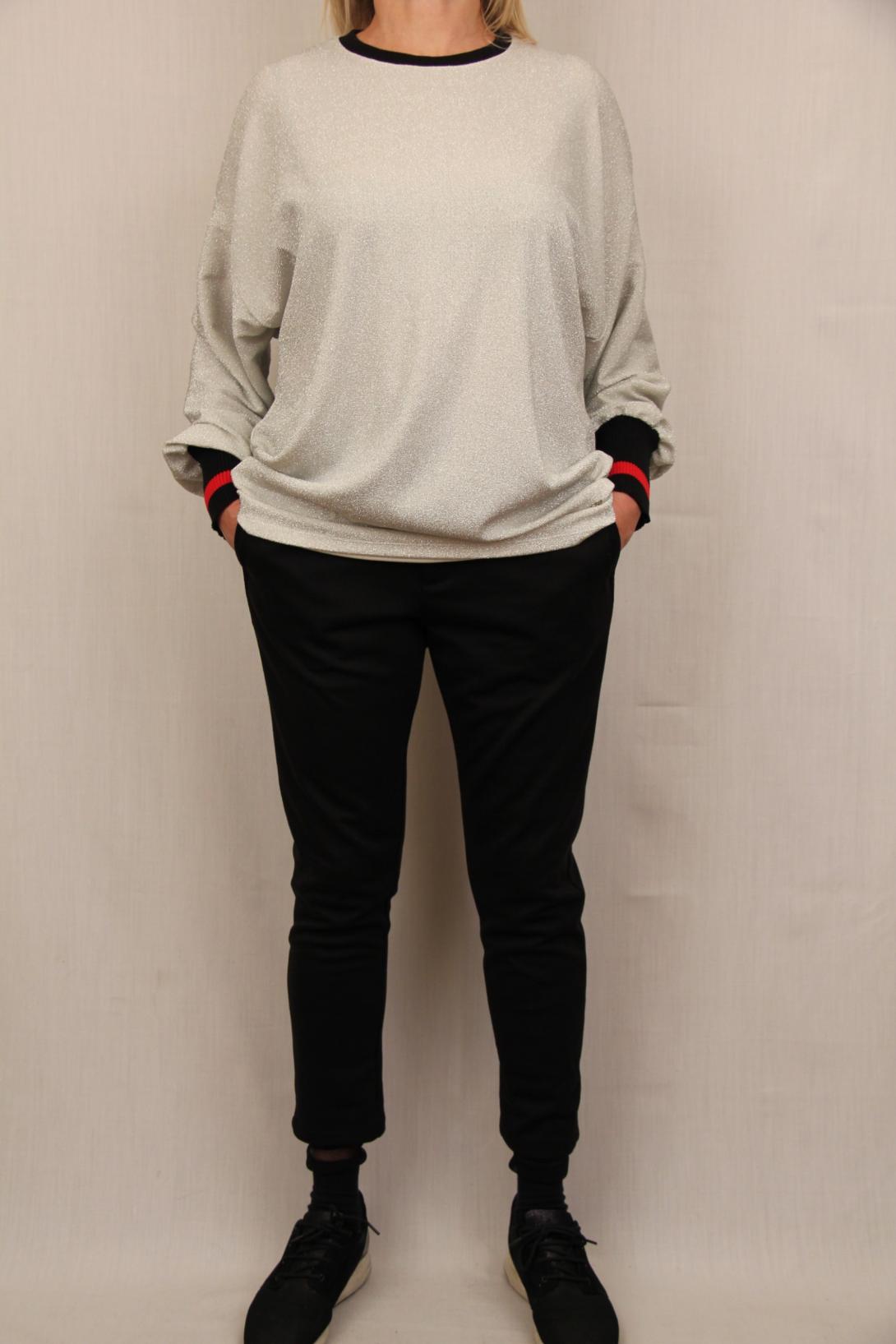 Вещи с люрексом особенно актуальны в этом сезоне. Блестящая туника с ярким чёрно-красным трикотажным манжетом это палочка выручалочка как для корпоративов, так и для походов в театр.