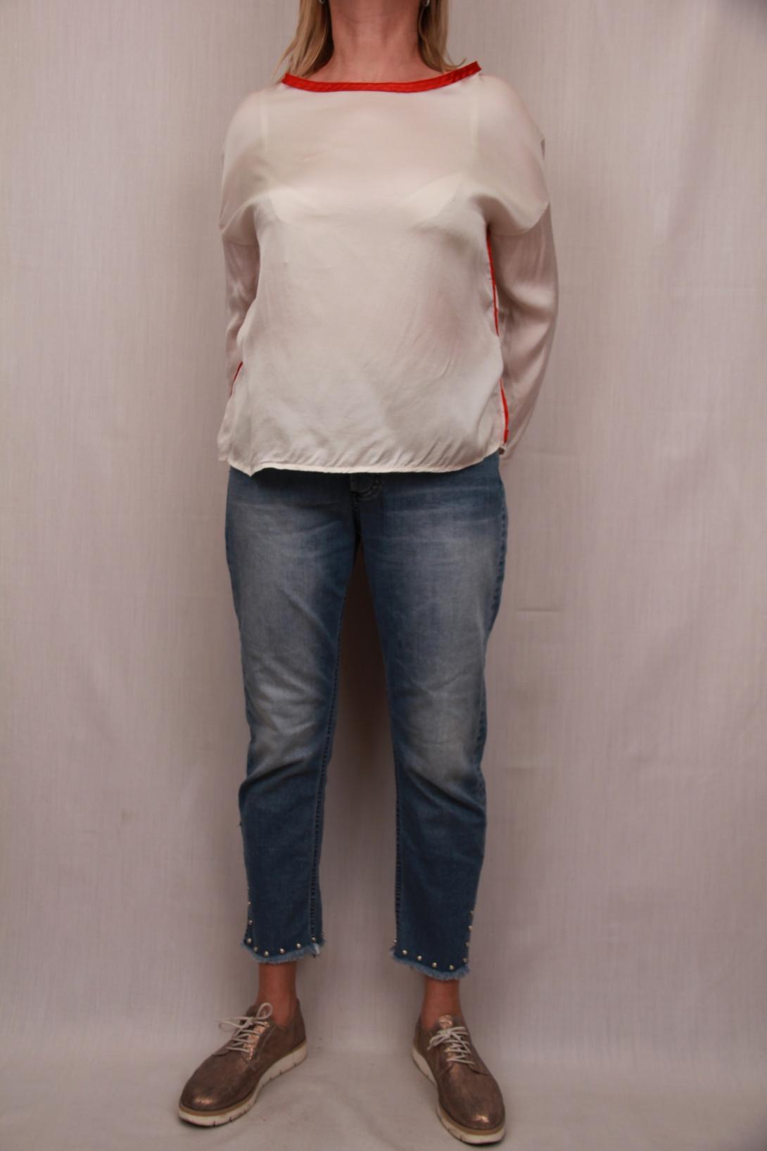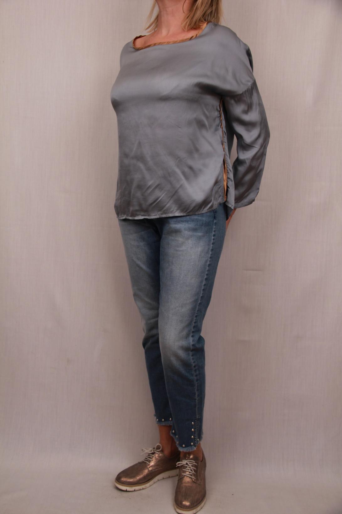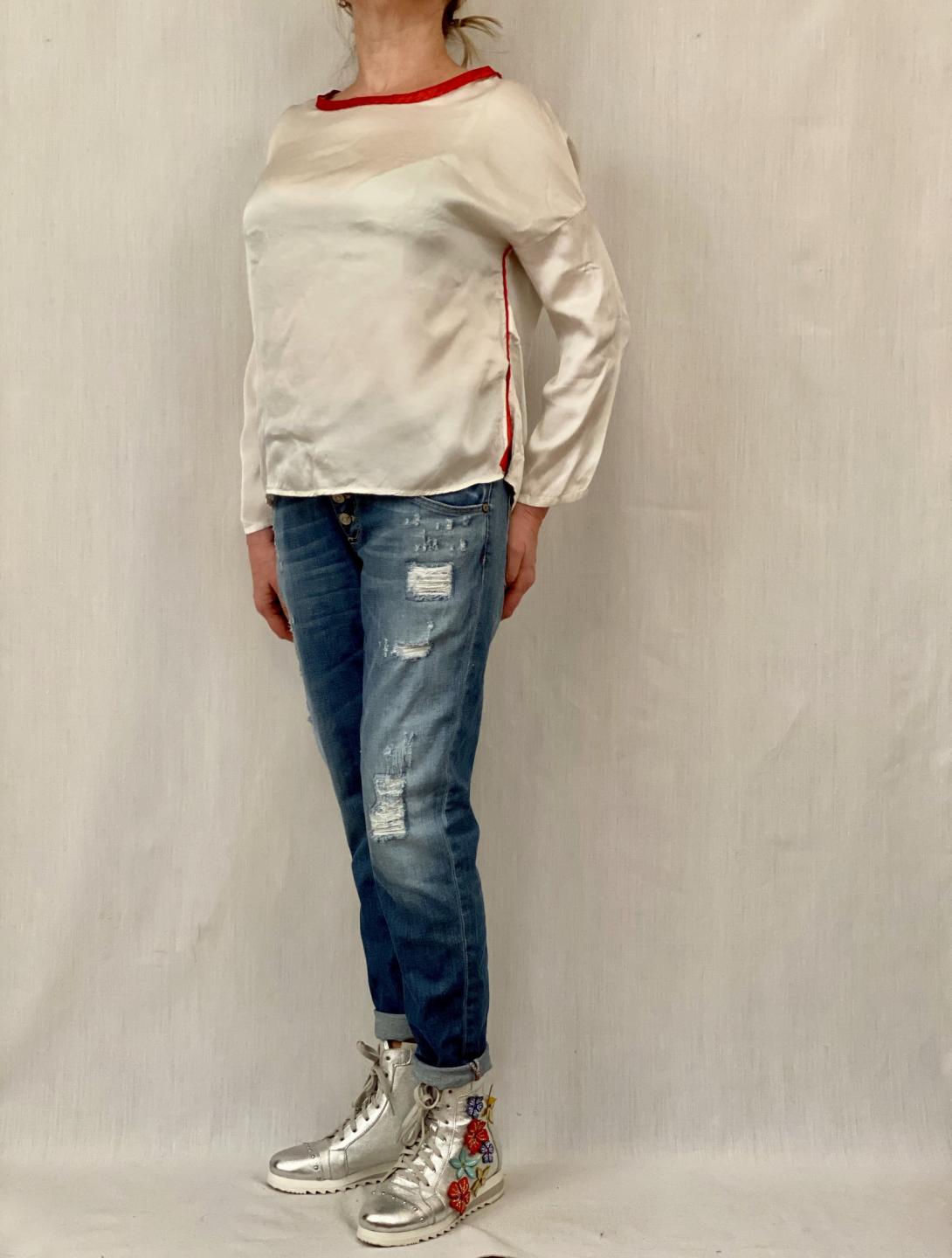 Блузка свободного кроя со спущенным плечом. Слегка небрежный вид этой блузки, создаёт особый шик.