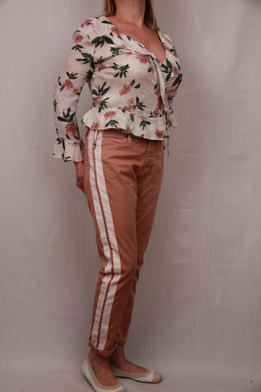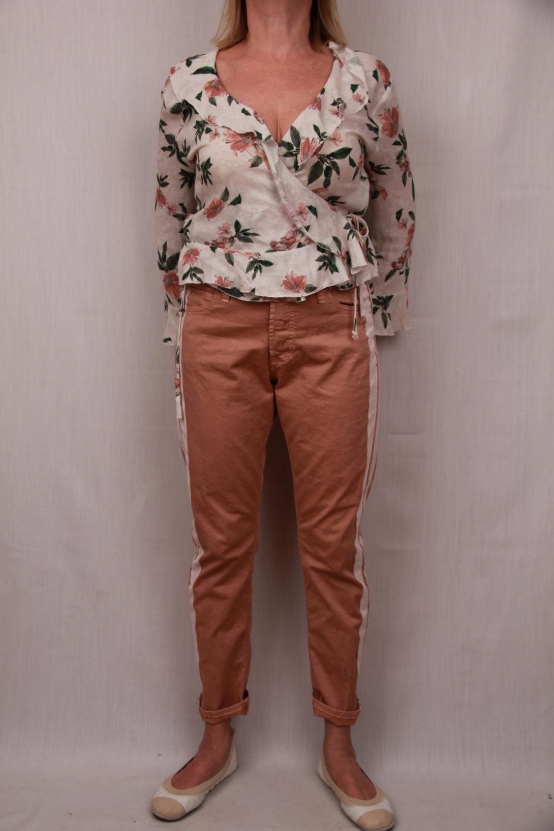Запашная блузка с цветочным принтом. Такая расцветка блузки сочетается с любым низом из новой коллекции, будь то цветные джинсы цвета хаки или персиковые брюки с лампасам.Please Италия.