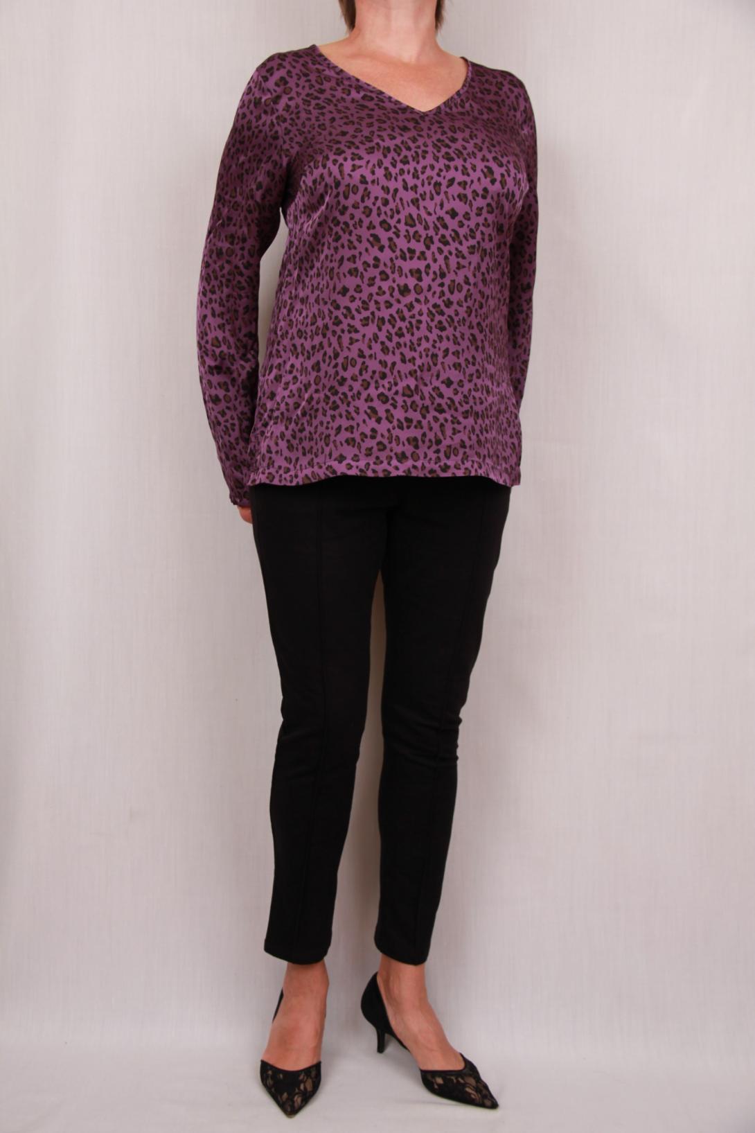 Красивая блузка с животным принтом модного фиолетового цвета.Итальянский бренд PLEASE.