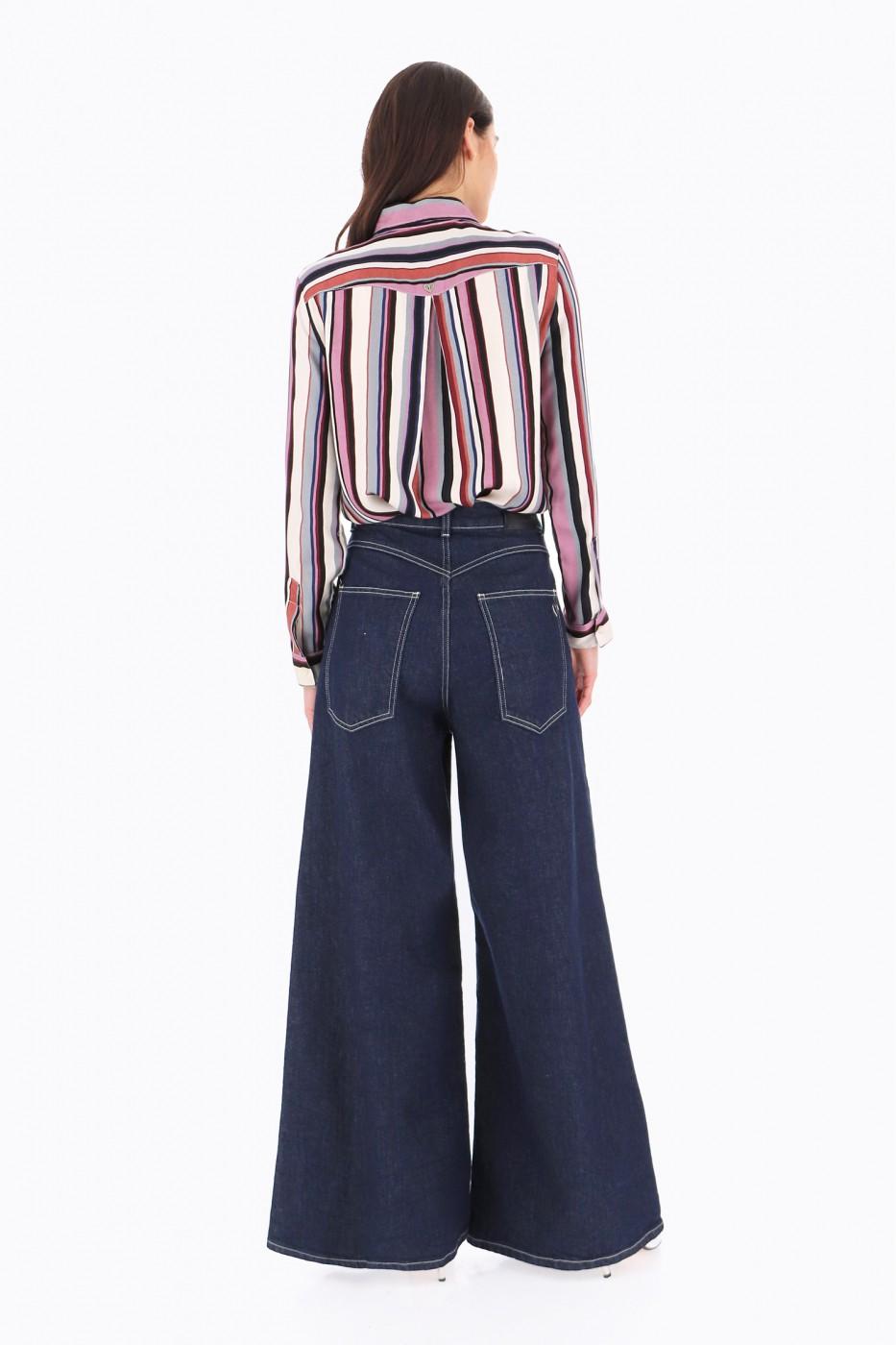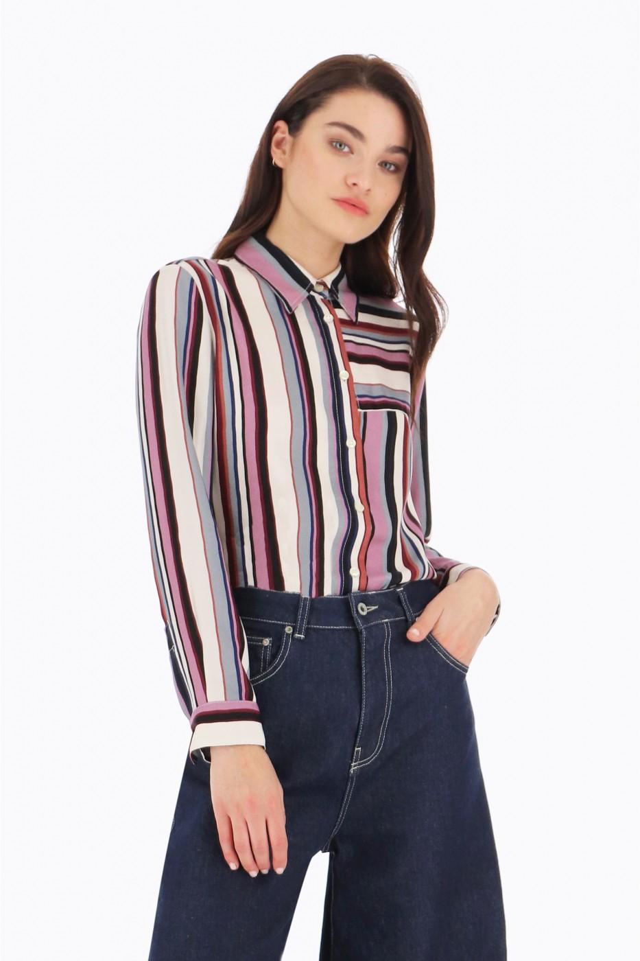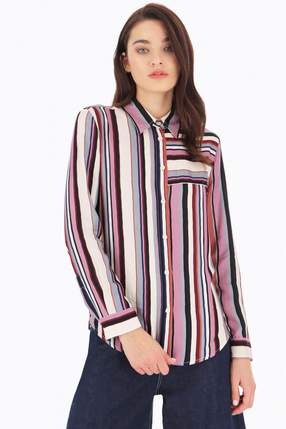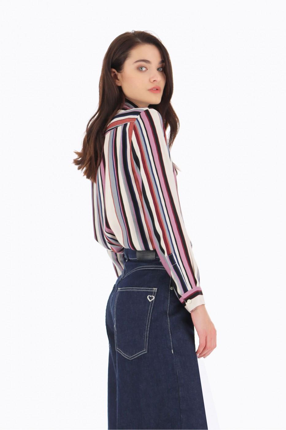 Шикарная блузка с длинным рукавом в активную полоску.Блузка рубашечного кроя подойдёт для уверенной в себе девушки.Модная и креативная одежда из Италии бренд Please.
