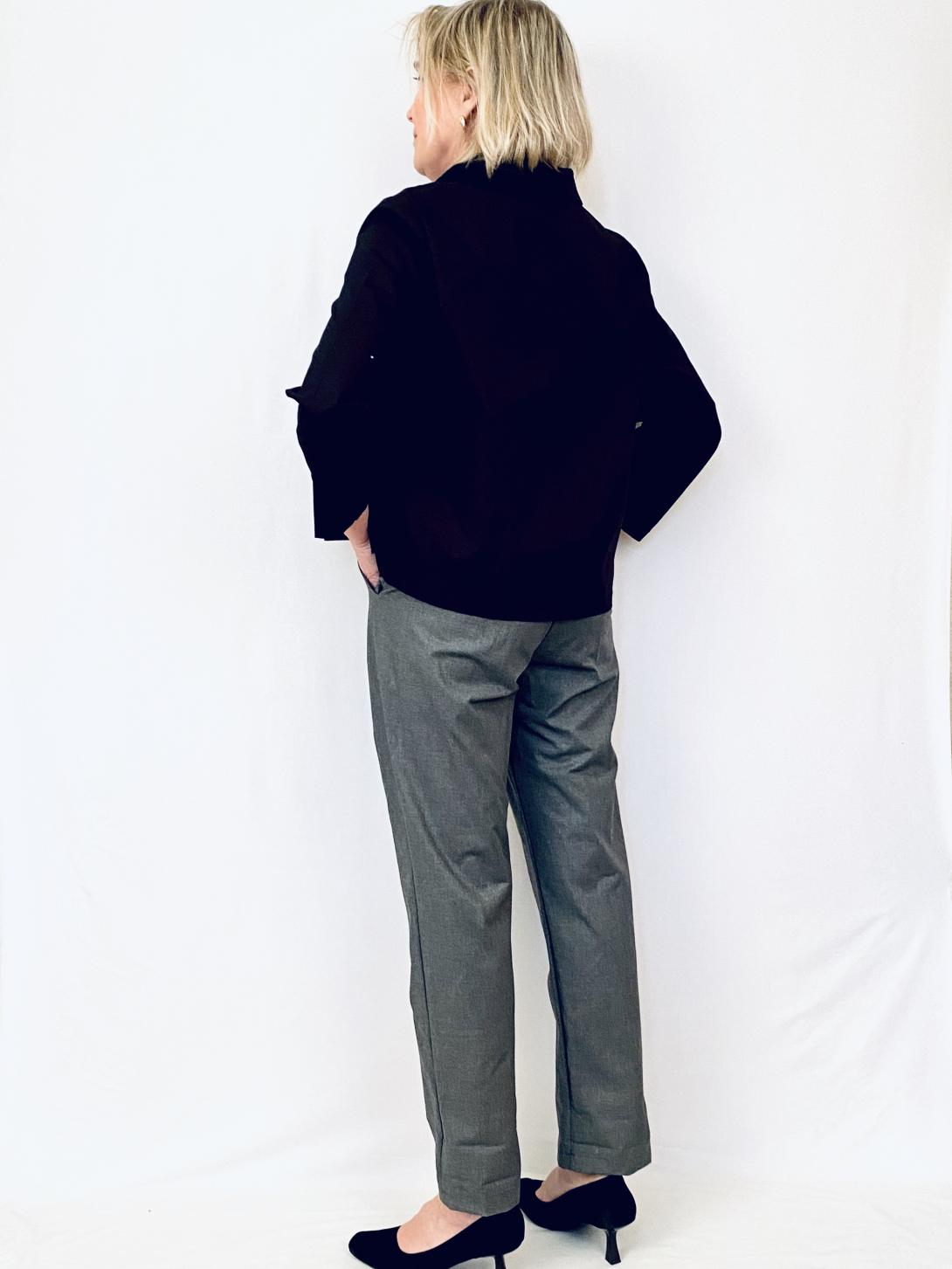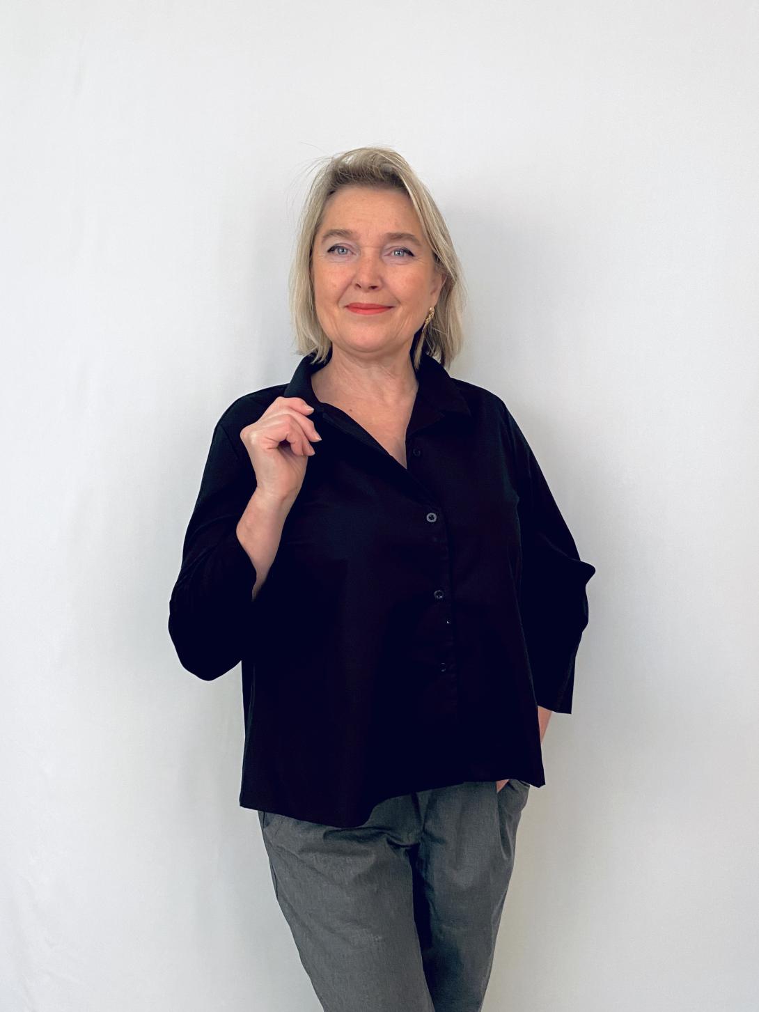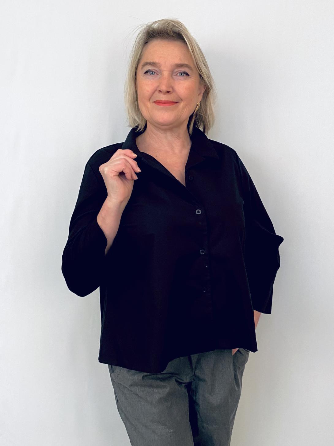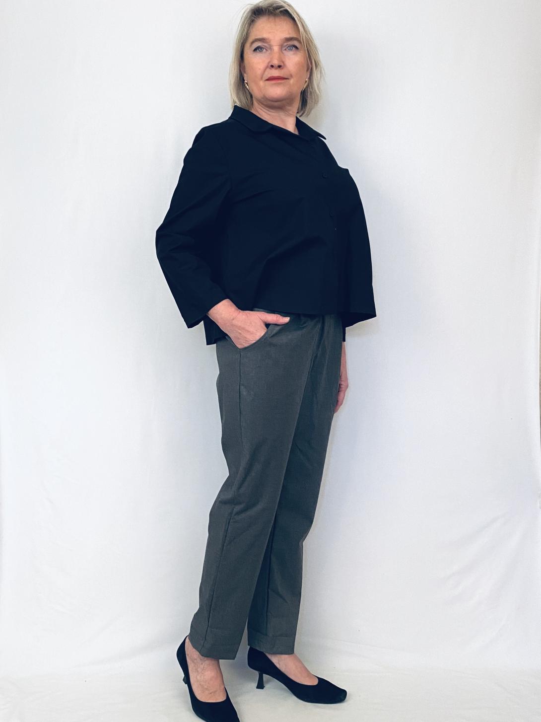Укороченная блузка классического чёрного цвета, трапеция, можно надевать поверх топа или футболки .