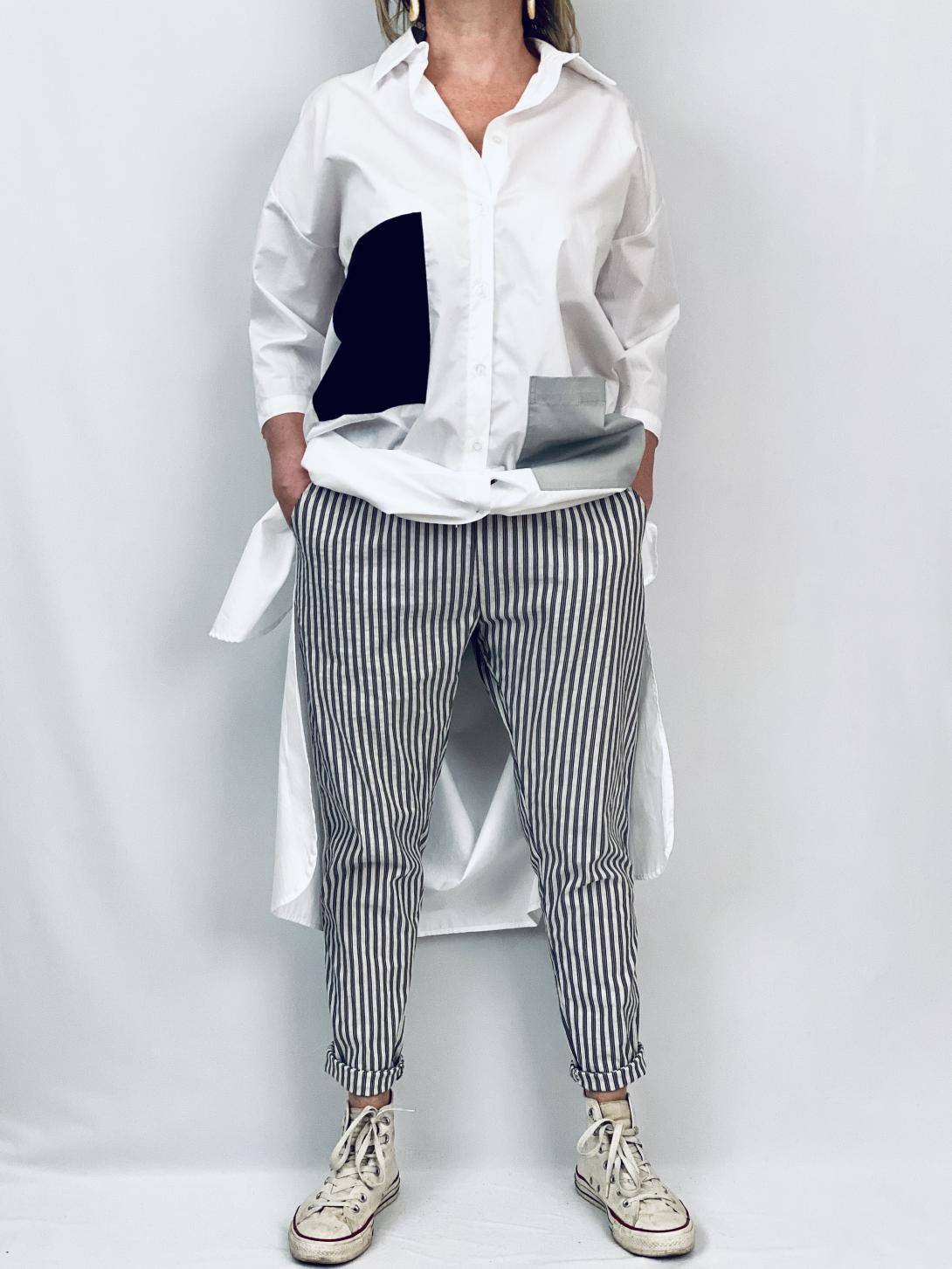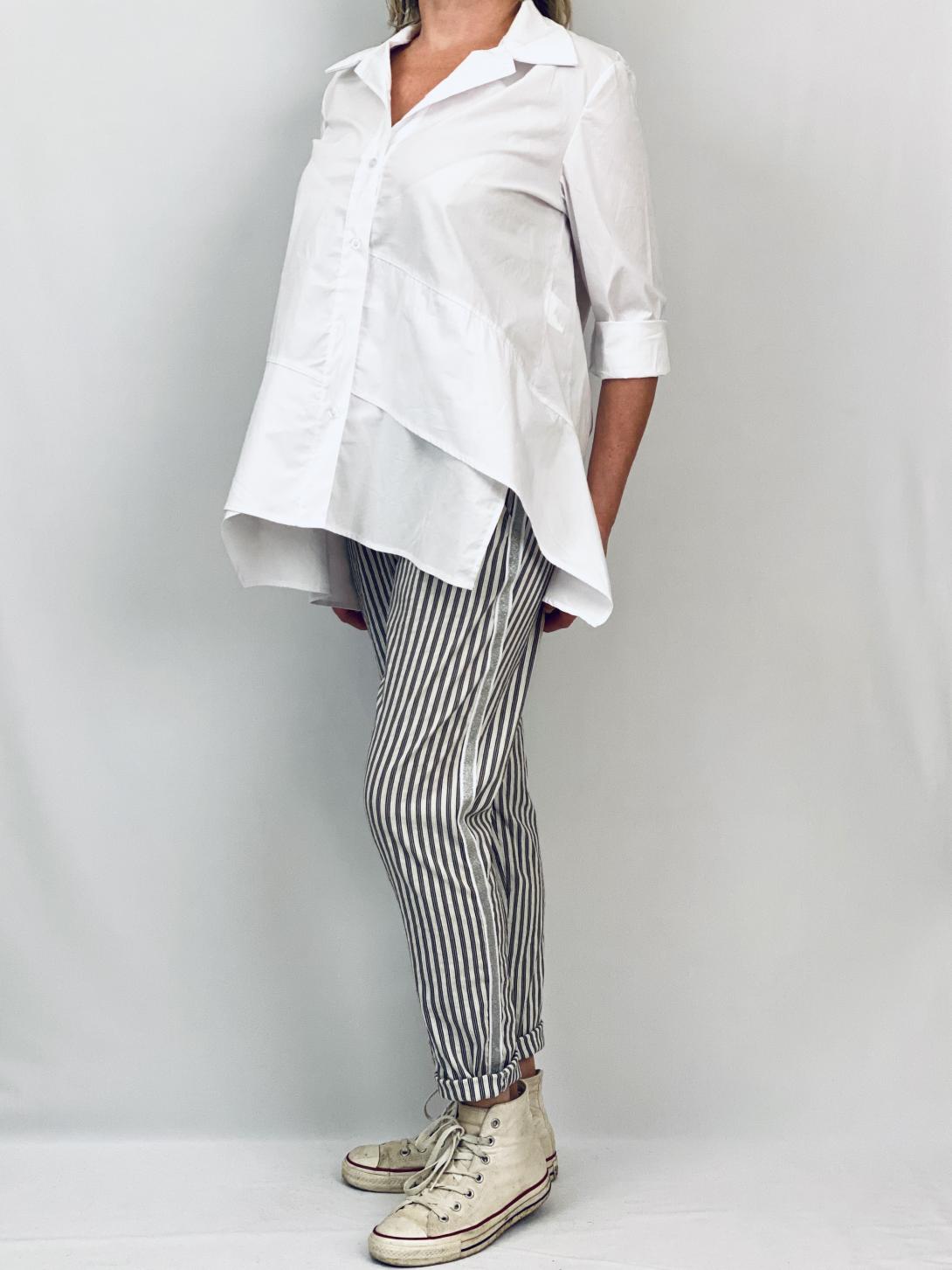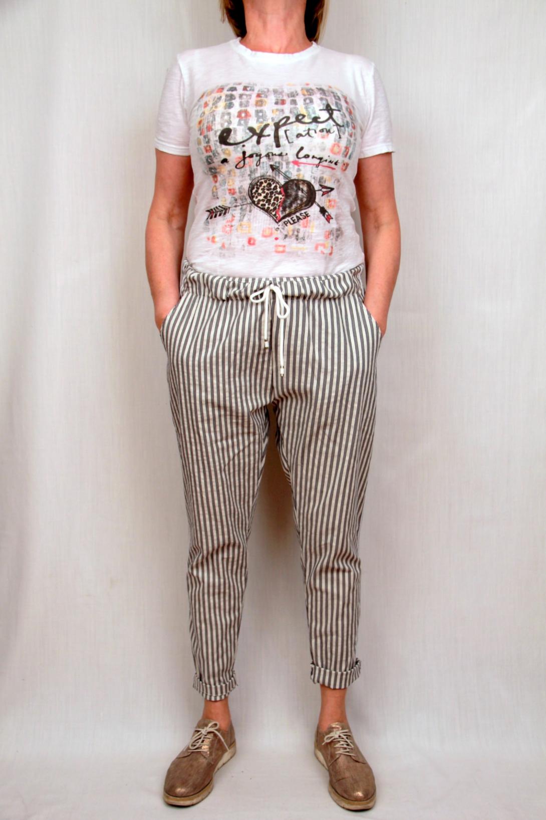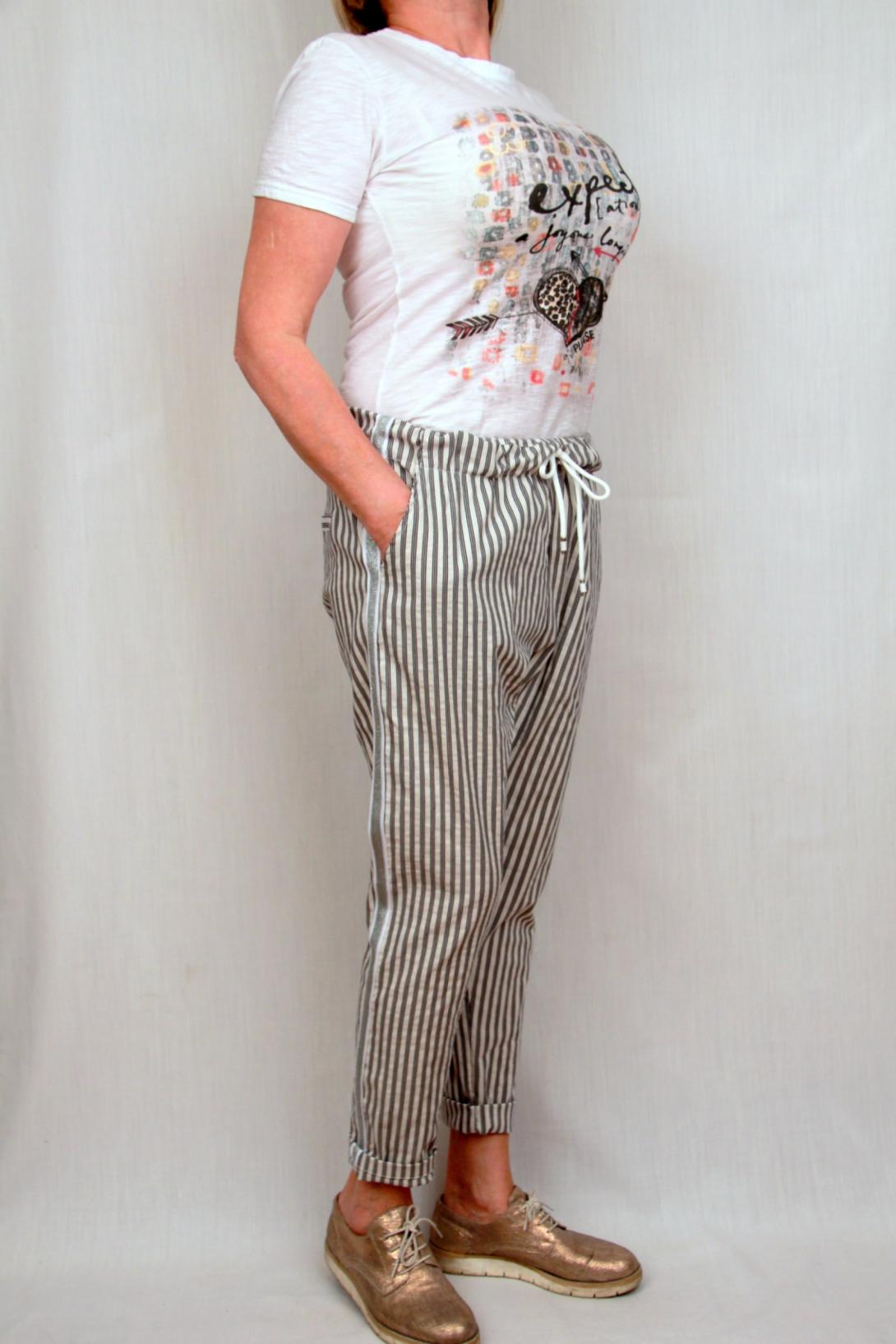 Стильные летние брюки в продольную полоску с ниткой люрекса. Брюки зауженные к низу.