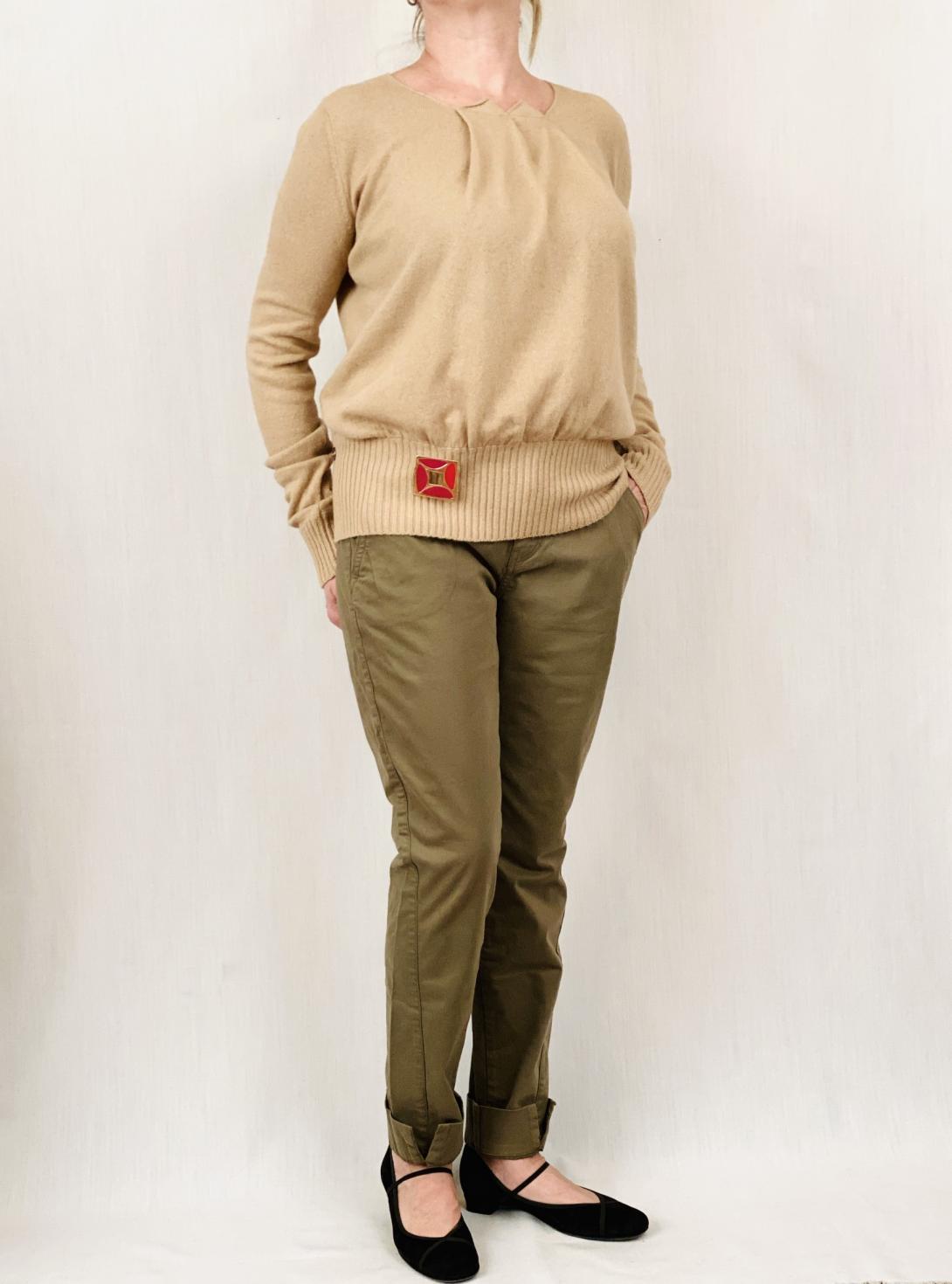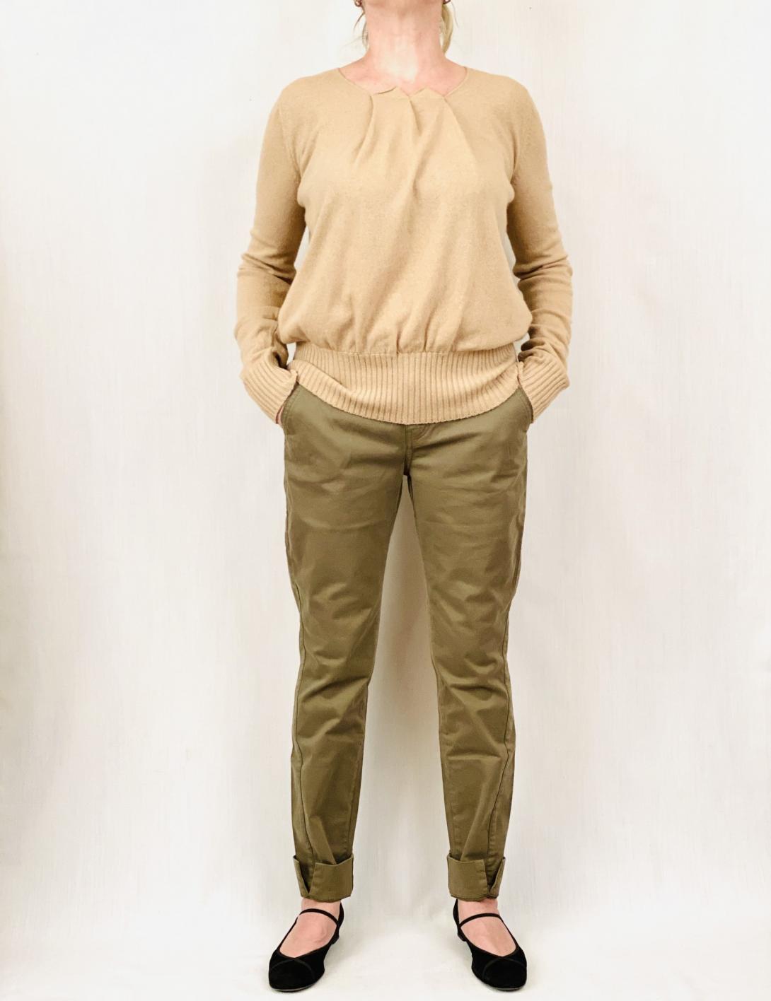 Конечно же это не джинсы,а скорее стильные брюки из плотной х/б ткани. Брюки узкие ,с небольшими разрезами внизу. У брюк полная длина,но при желании можно брюки подвернуть.Цвет сложный,как впрочем у всей одежды от Manila Grace.