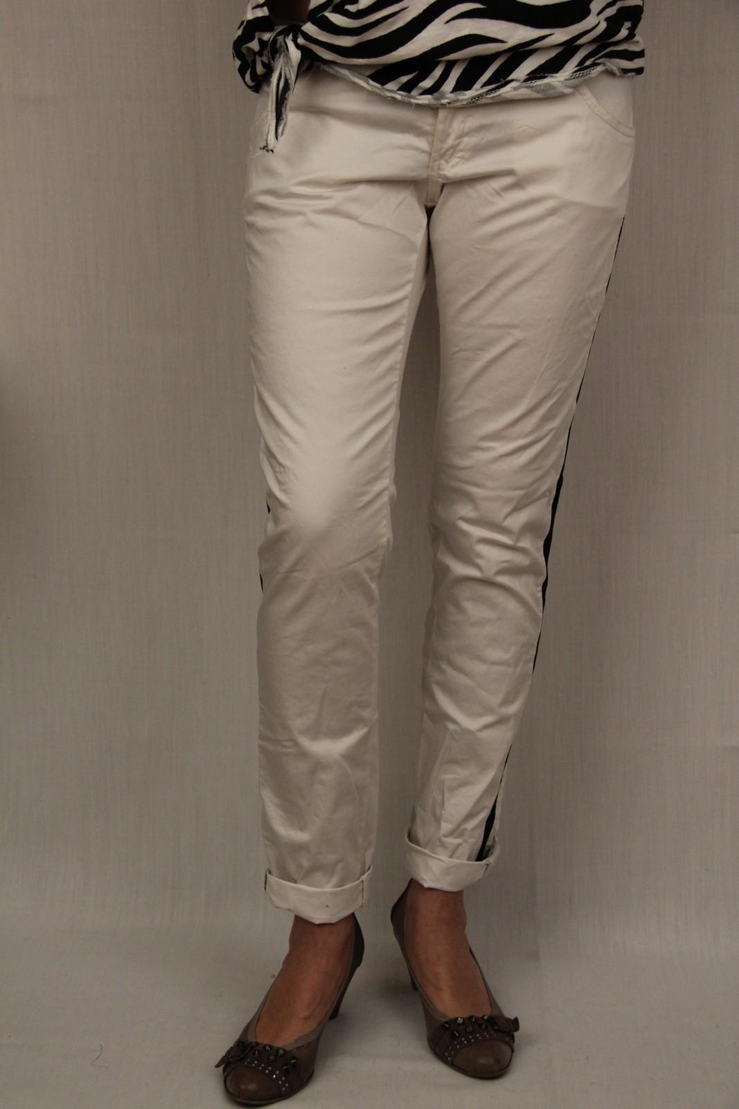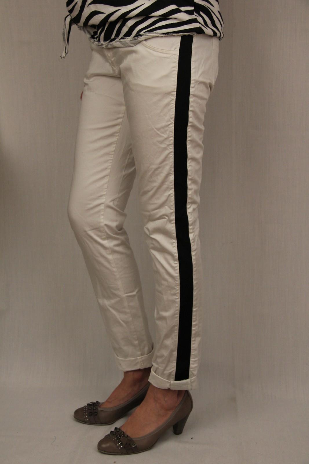 Комфортные прямые белые брюки с чёрным лампасом. Брюки комплектуются с чёрным жакетом в виде фрака или со строгим деловым пиджаком .