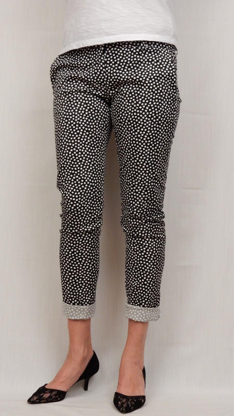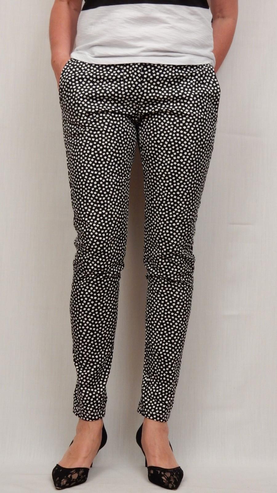 Узкие элегантные брюки. Посадка не высокая. Брюки можно использовать для работы в офисе. Брюки комплектуются с чёрным жакетом или блузкой белого и чёрного цвета.