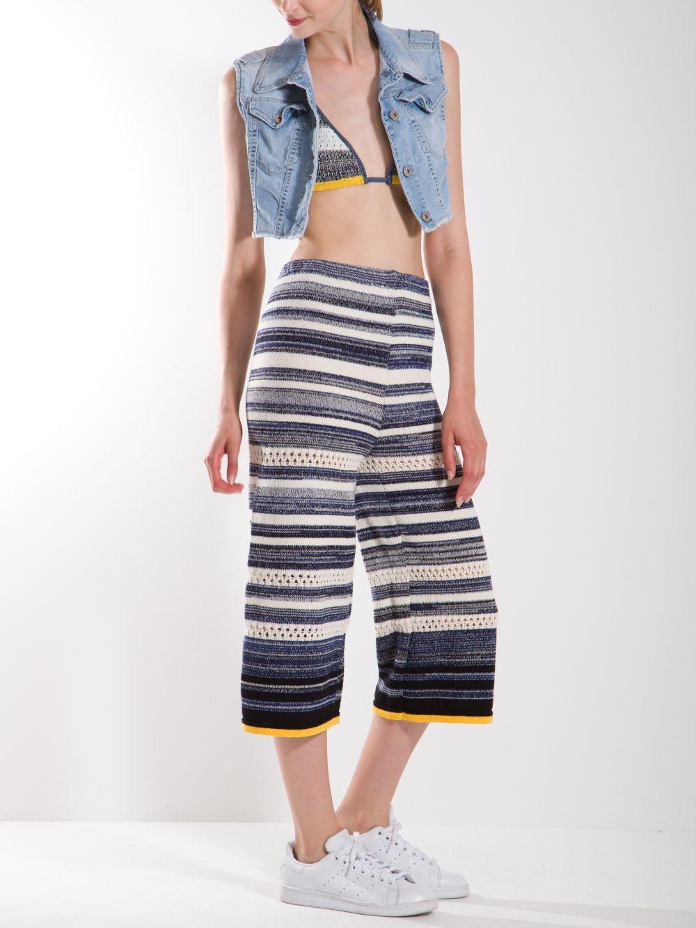 Стильные кюлоты из меланжевого трикотажа. Посадка брюк очень удобная.