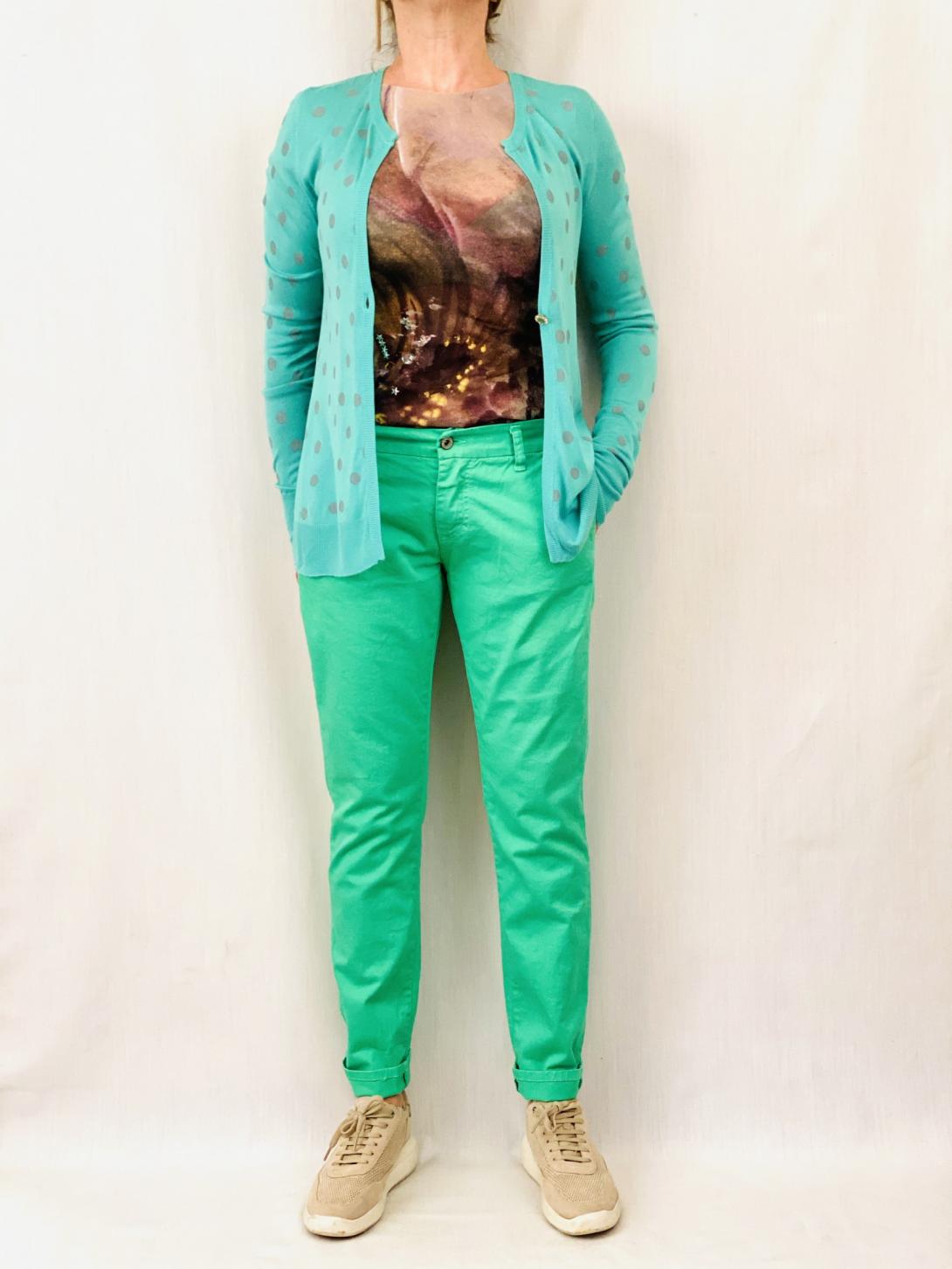 Яркие цвета молодой травы прямые брюки от Итальянского бренда PLEASE брюки.( Вы можете купить схожие по модели брюки но в более спокойном цвете чёрный, светло-серый и белый цвет ). Эти модные брюки прекрасно сидят и легко комплектуются с модной итальянской одеждой этого сезона.