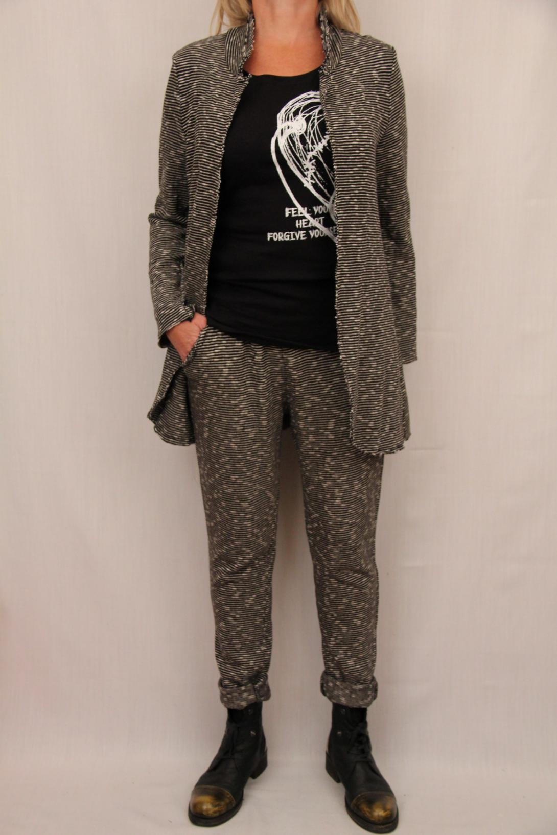 Очень модные меланжевые трикотажные брюки. Брюки комплектуются с пиджаком напоминающий фрак или с мягким трикотажным удлинённым пиджачком из аналогичной ткани от Ит.бренда Please.