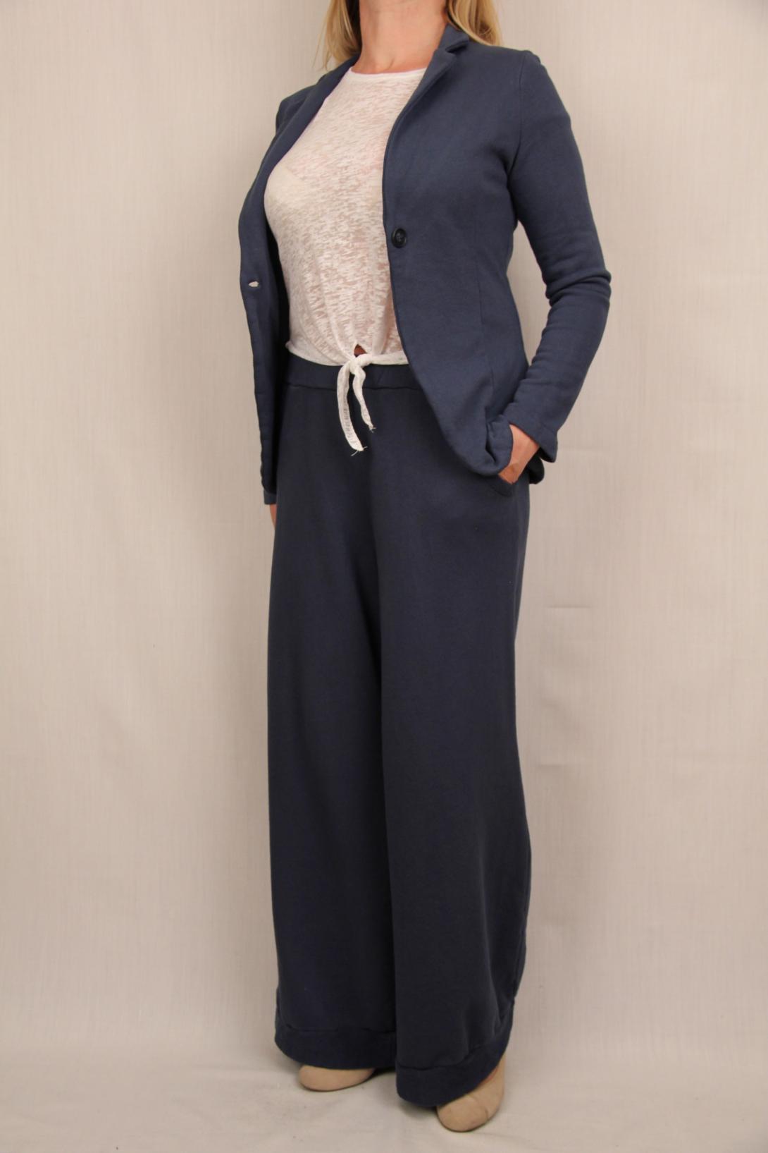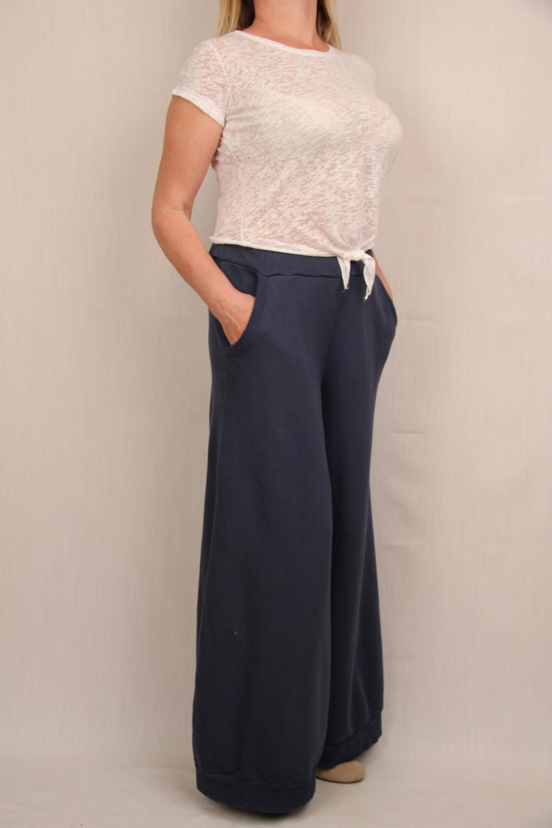 Шикарные брюки широкие от бедра тёмно-синего цвета.