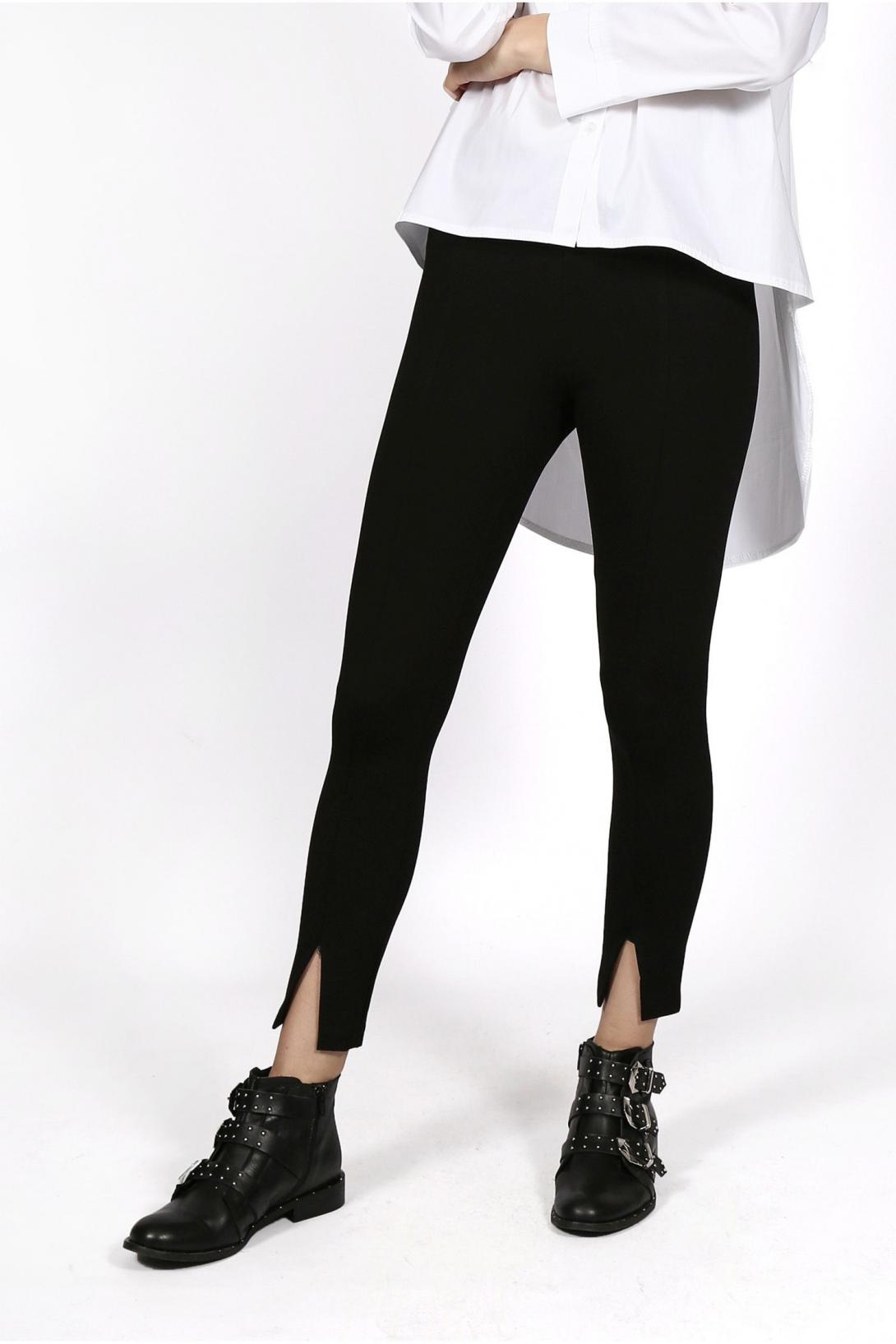 Плотные чёрные легинсы с разрезом по ноге. Легинсы можно комплектовать с туникой, платьем или просто с модным свитером или кардиганом.