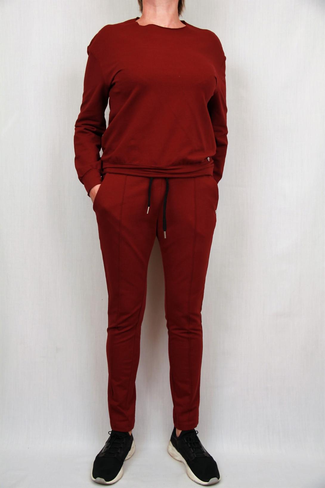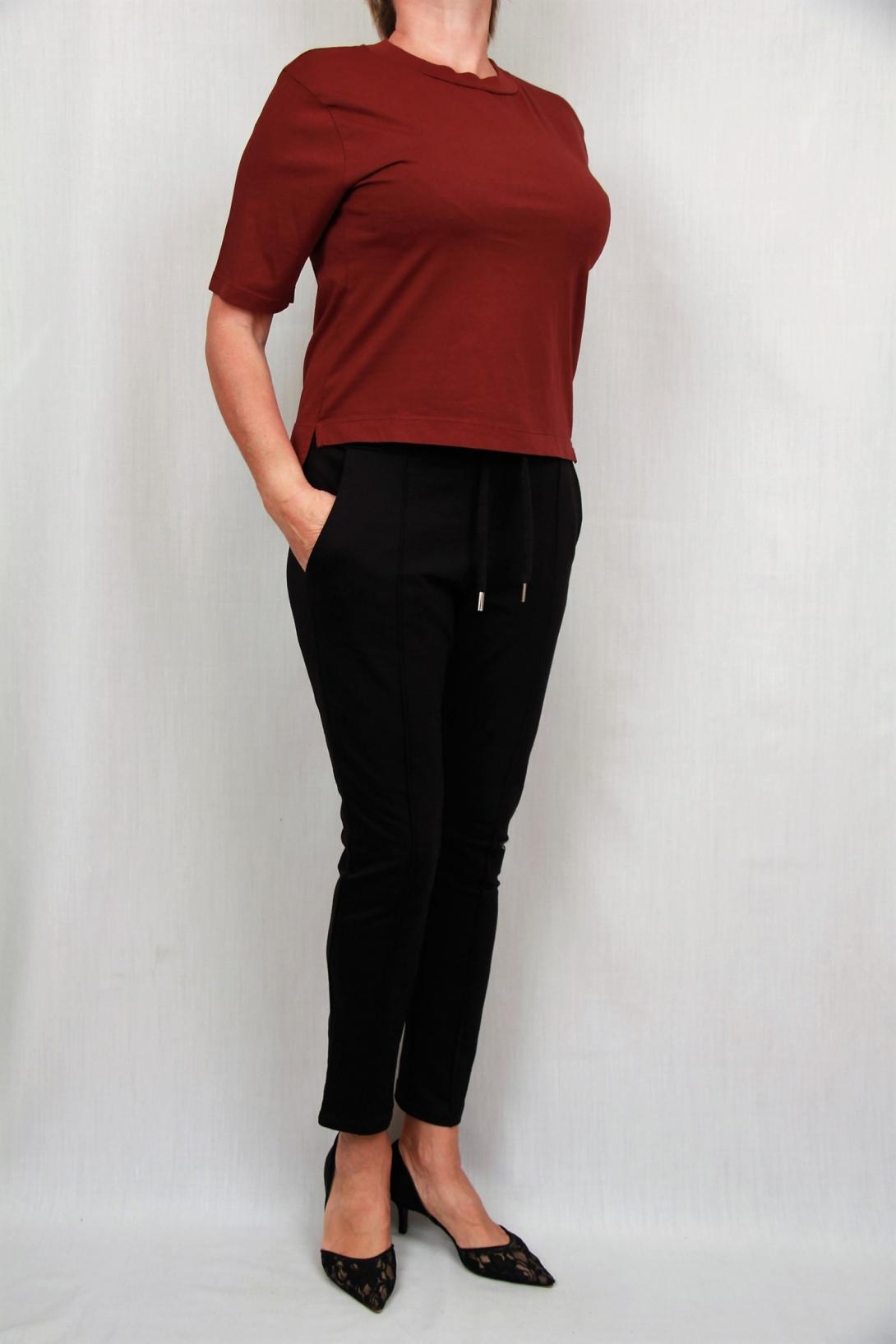 Отличные трикотажные брючки со стрелкой. Брюки на поясе- кулиске, посадка комфортная. В нашем магазине вы сможете купить жакет бордового цвета и цвета хаки для создания полного комплекта.