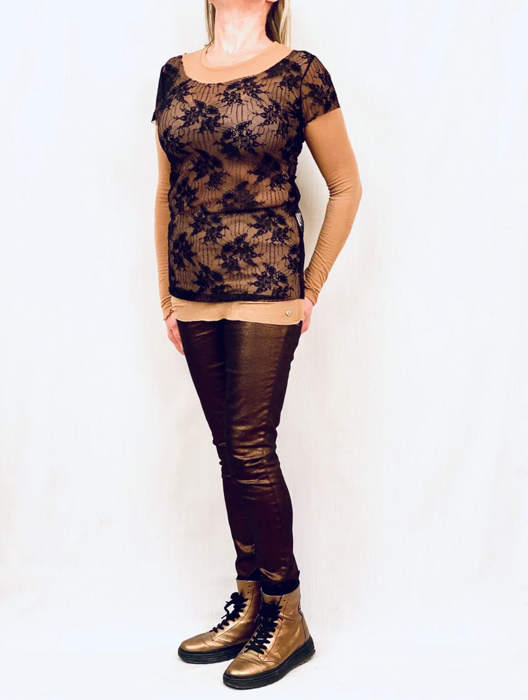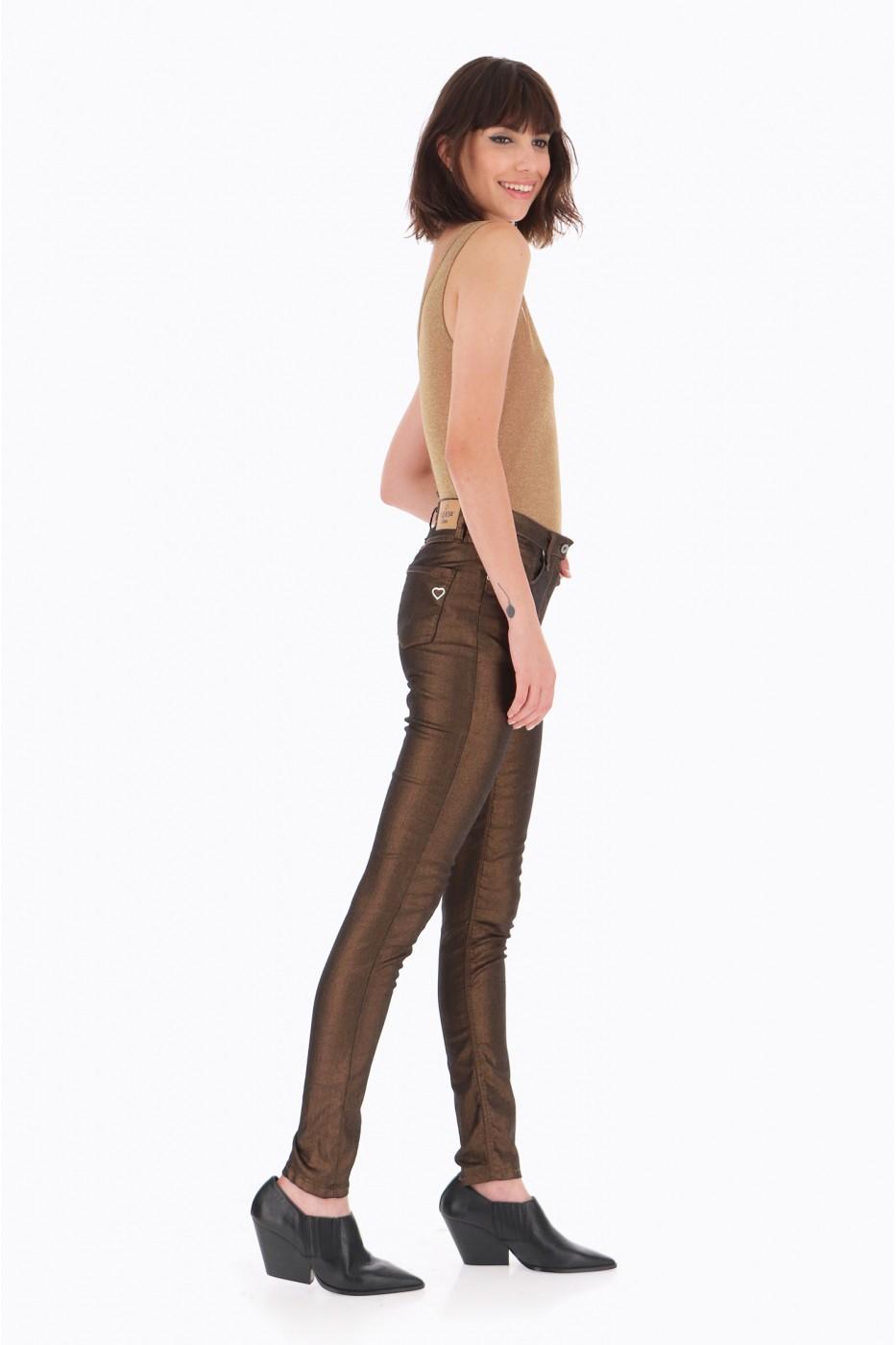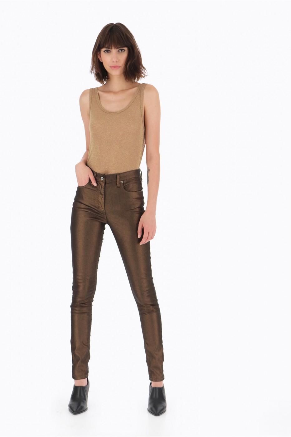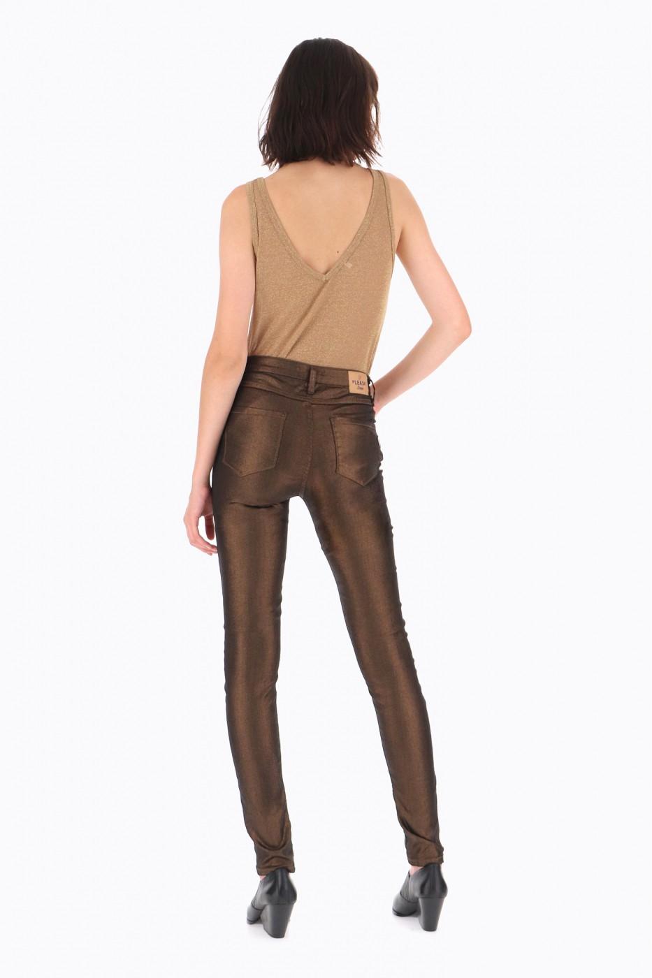 Очень эффектные cкини, эко кожа с бронзовым отливом. Высокая посадка. Есть топ свободного кроя аналогичного цвета для создания идеального комплекта одежды.