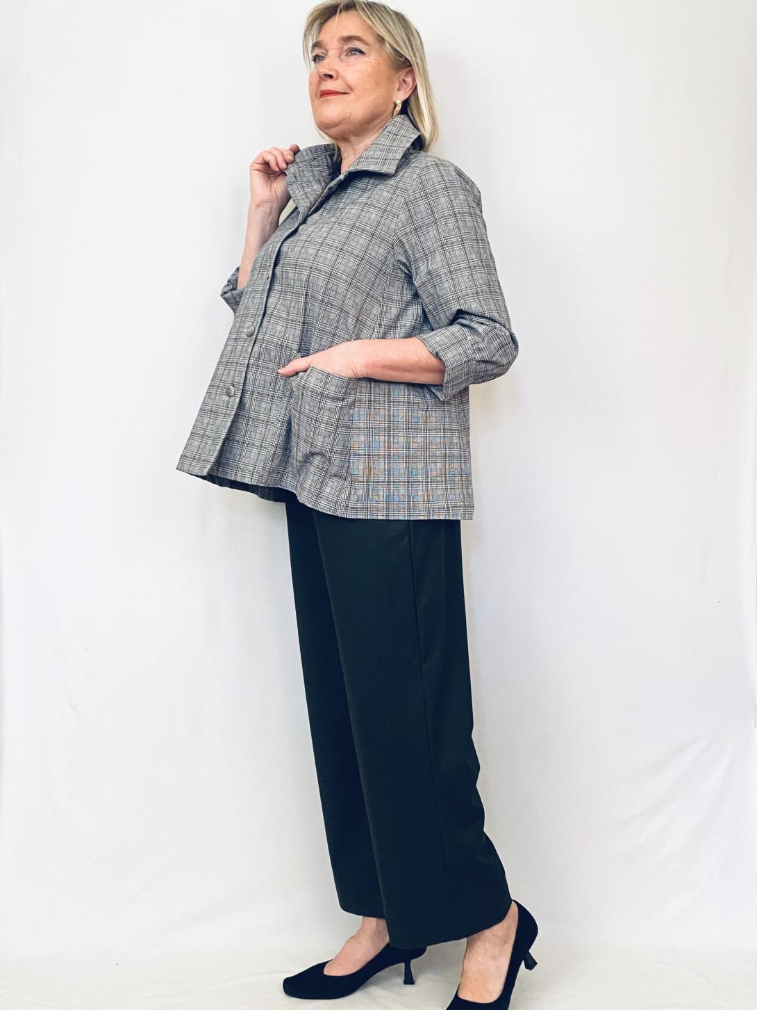 Средняя длина брюк и карманы добавляют практичности и функциональности.