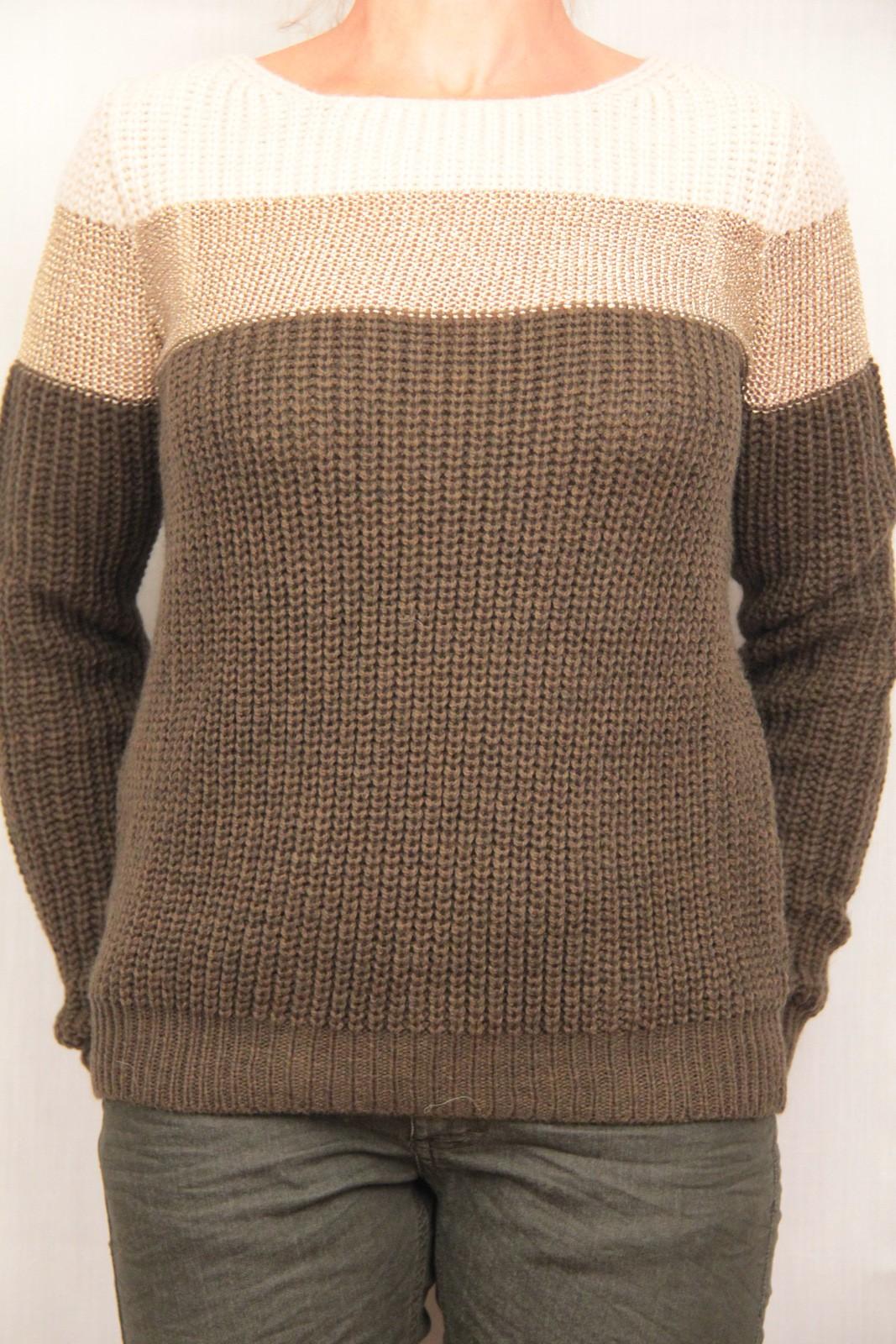 Стильный свитер с золотой люрексовой нитью по верхней части(по плечам) Основной цвет- хаки.