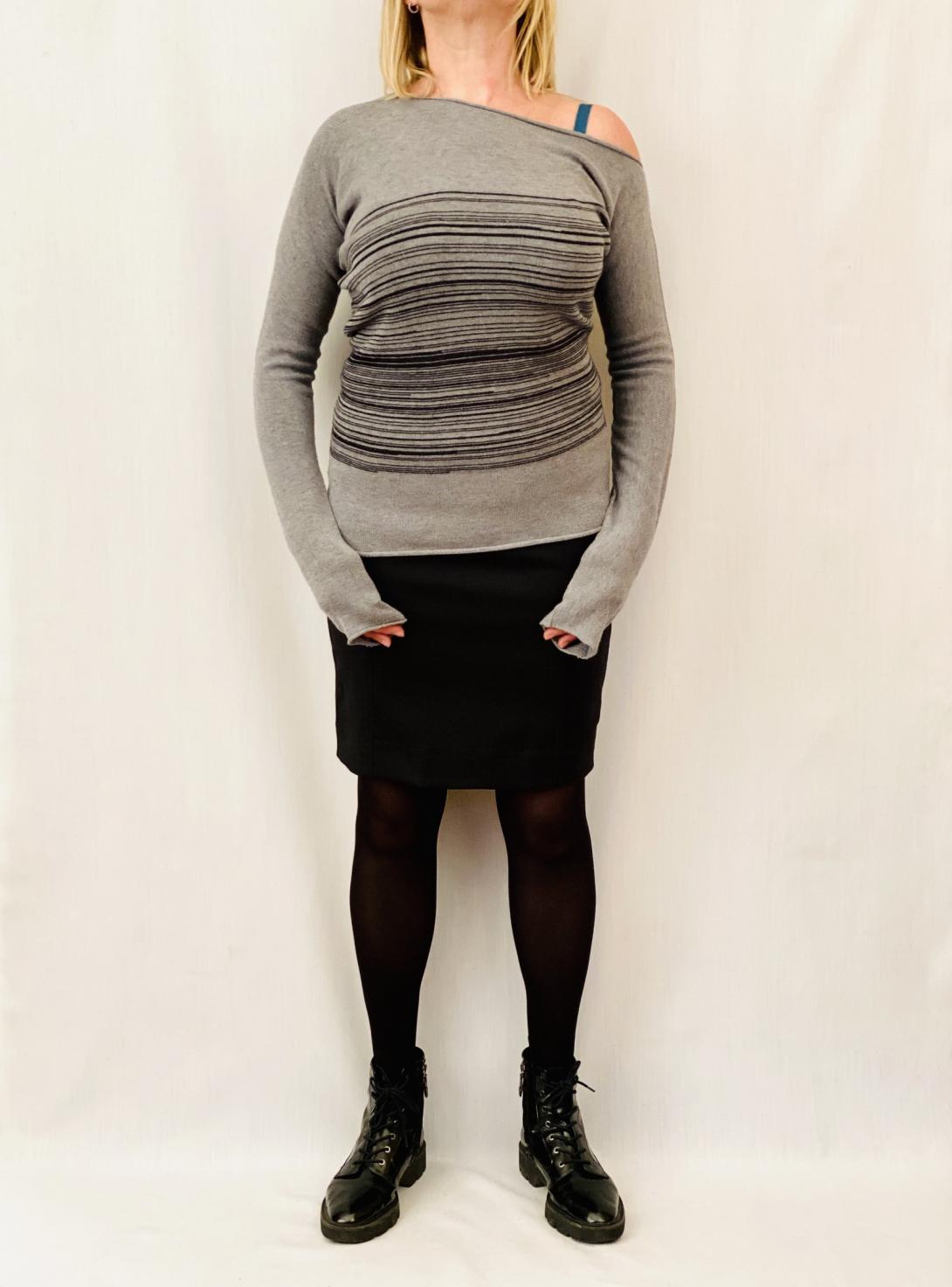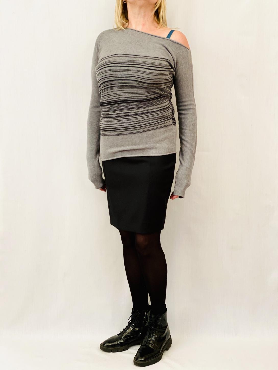 Ассиметричный трикотаж эффектно выглядит, если оголить одно плечо.