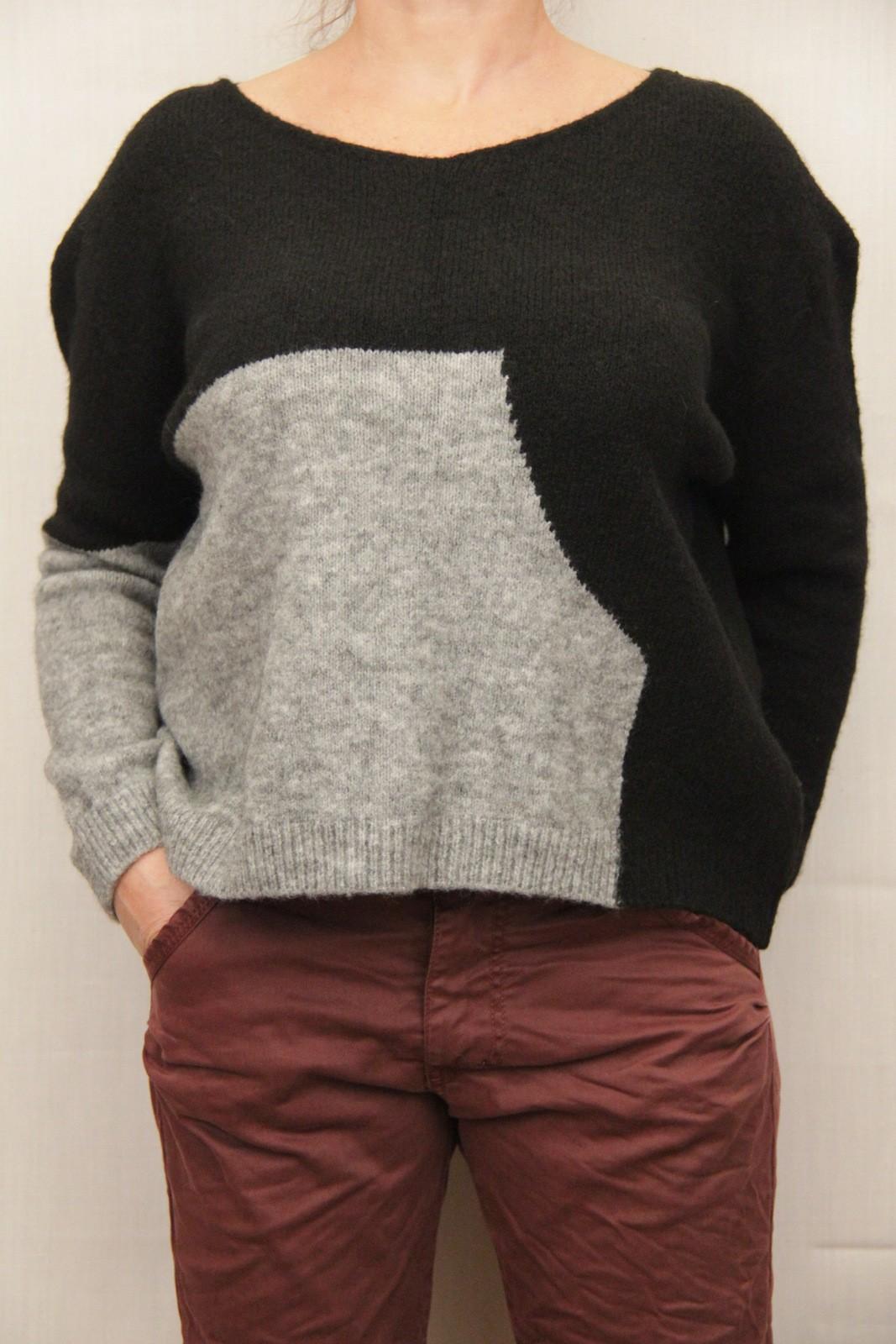 Теплый свитер плотной вязки, с геометрическим рисунком.Свитер объёмный, т.е подойдёт от 44 до 48 размеров.