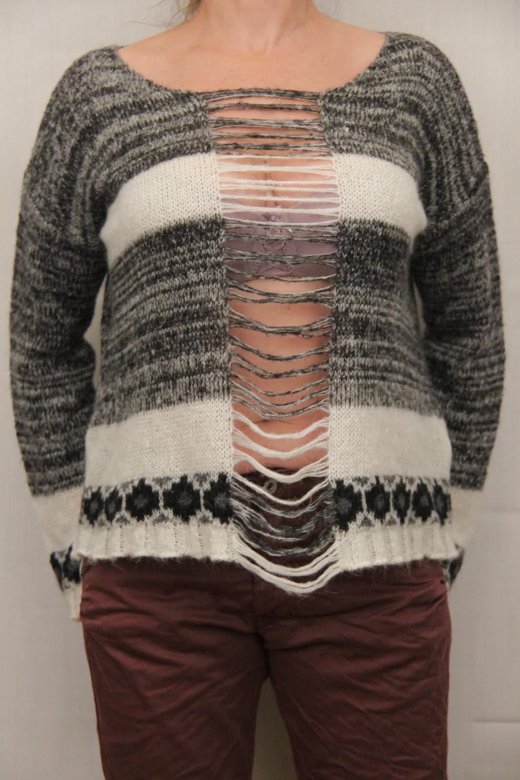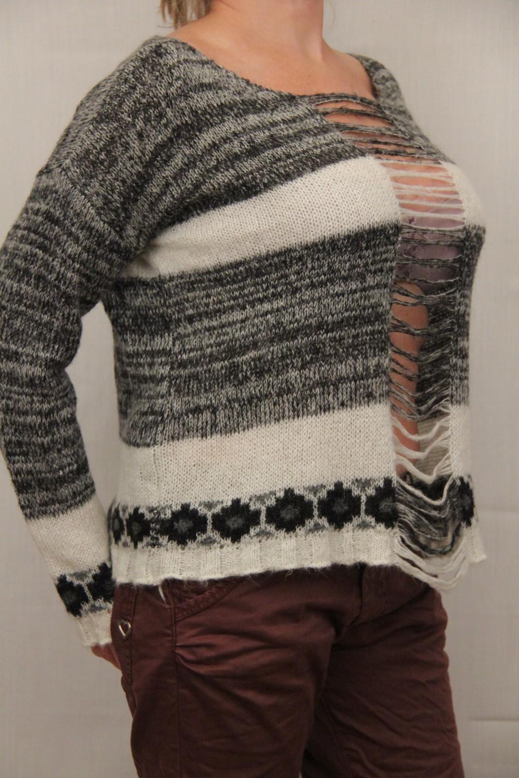 Красивый и оригинальный по крою свитер от итальянского бренда PLEASE. Комплектовать свитер с блузкой, топом или футболкой.