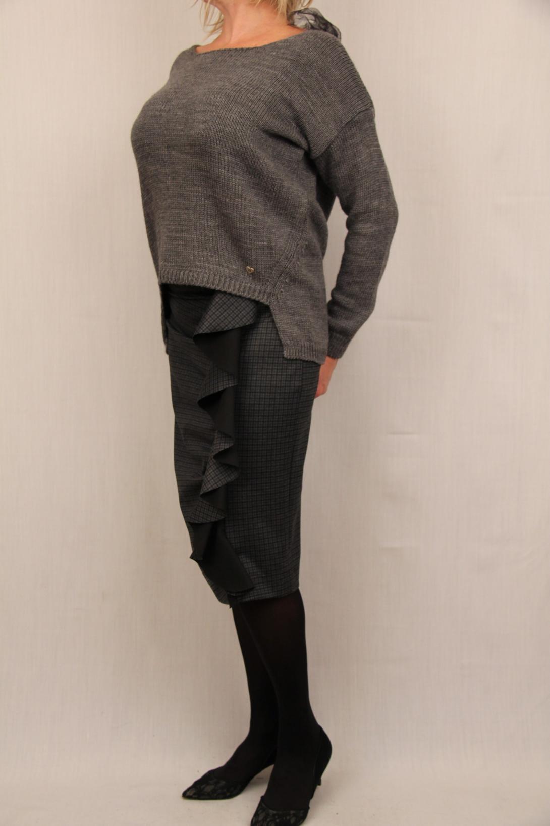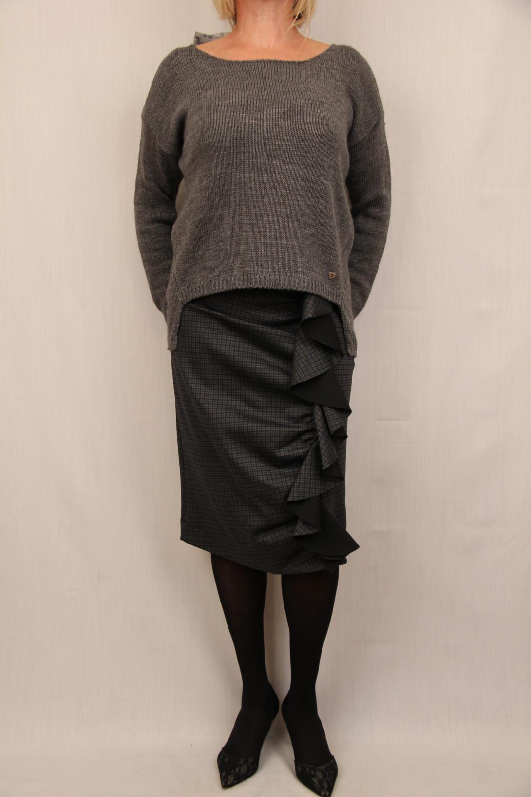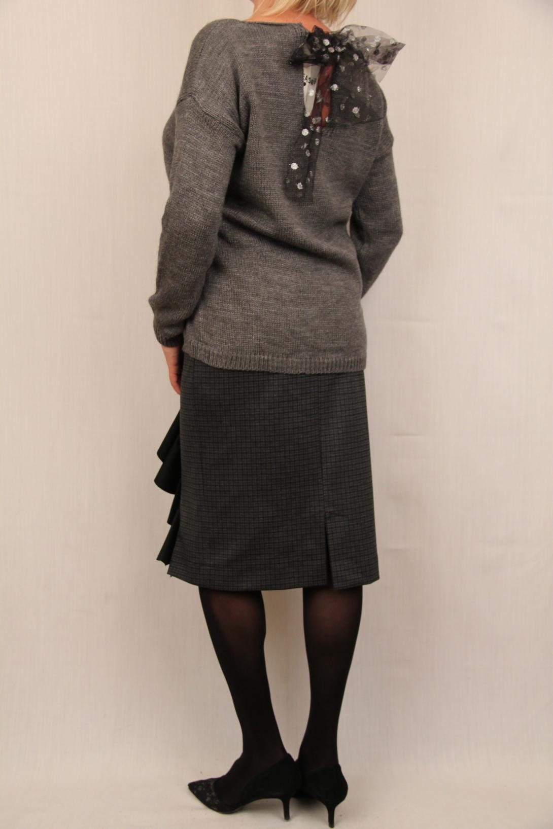 Стильный джемпер от итальянского бренда Please. Трикотаж графитового цвета с нарядным бантом на спине.