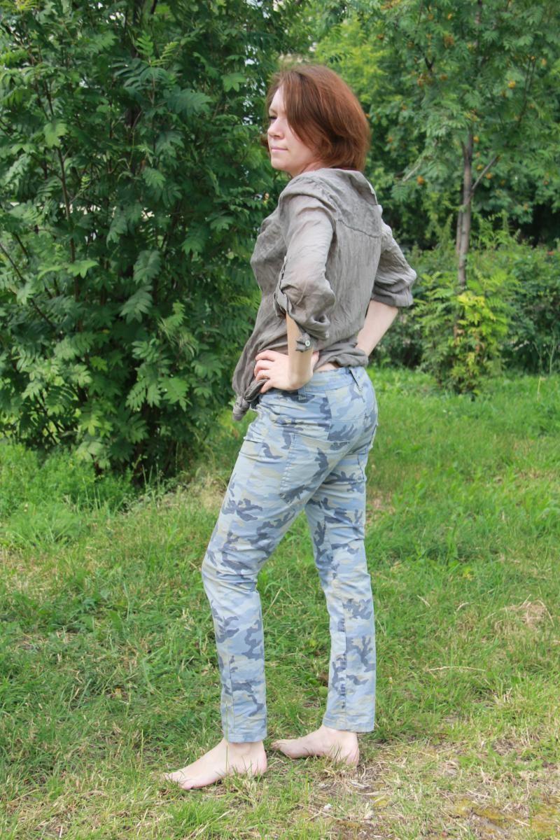Модные джинсы бойфренд в голубовато-сером цвете милитари только для очень стройных. Сидят джинсы отлично.