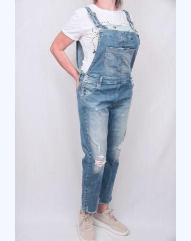 Стильный джинсовый комбинезон от итальянского бренда Please. Комбинезон всегда в тренде.Джинсовый комбинезон Please - это стильная и удобная одежда для женщин. Этот комбинезон изготовлен из высококачественного хлопка и эластана, что делает его прочным и комфортным в носке. Он имеет необработанный край и рваную отделку, что придает ему винтажный вид. Комбинезон имеет полуприлегающий силуэт и подходит для повседневной носки.