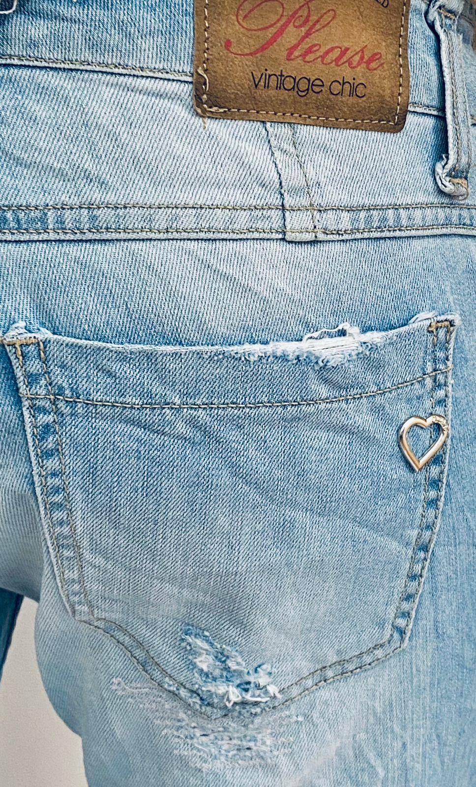 Джинсы бренда PLESAE Италия.Дырки на джинсах не насквозь, низкая посадка, застёжка на трёх болтах. Классные светлые джинсы для лета.