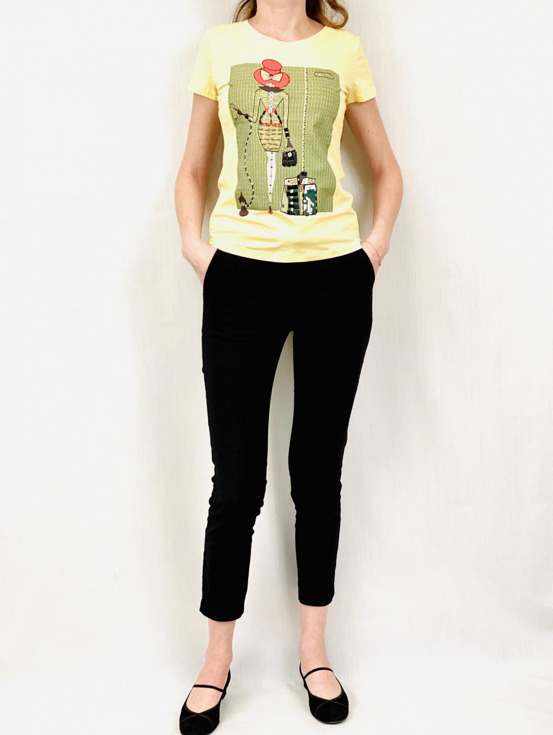 Яркая желтая с веселым принтом футболка. Расшита бисером.