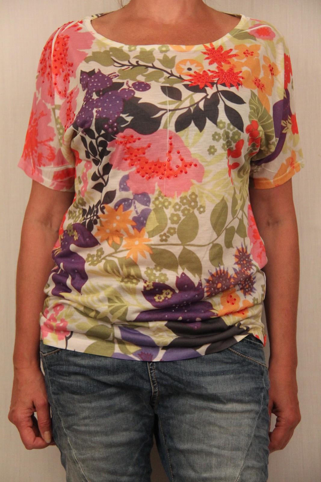 Красивая футболка с вышивкой бисером. Скорее даже, что это красивый яркий блузон. Смотрится очень нарядно.