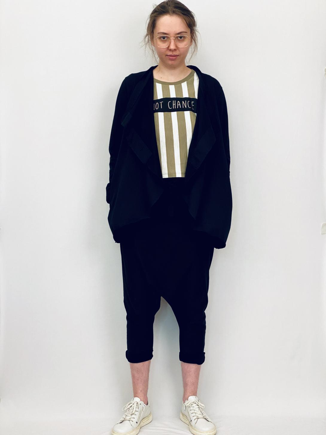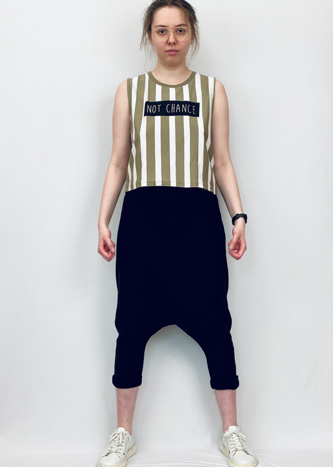 Короткая футболка с принтом в продольную полоску.Очень модная модель этого сезона.Бренд Kontatto.