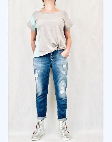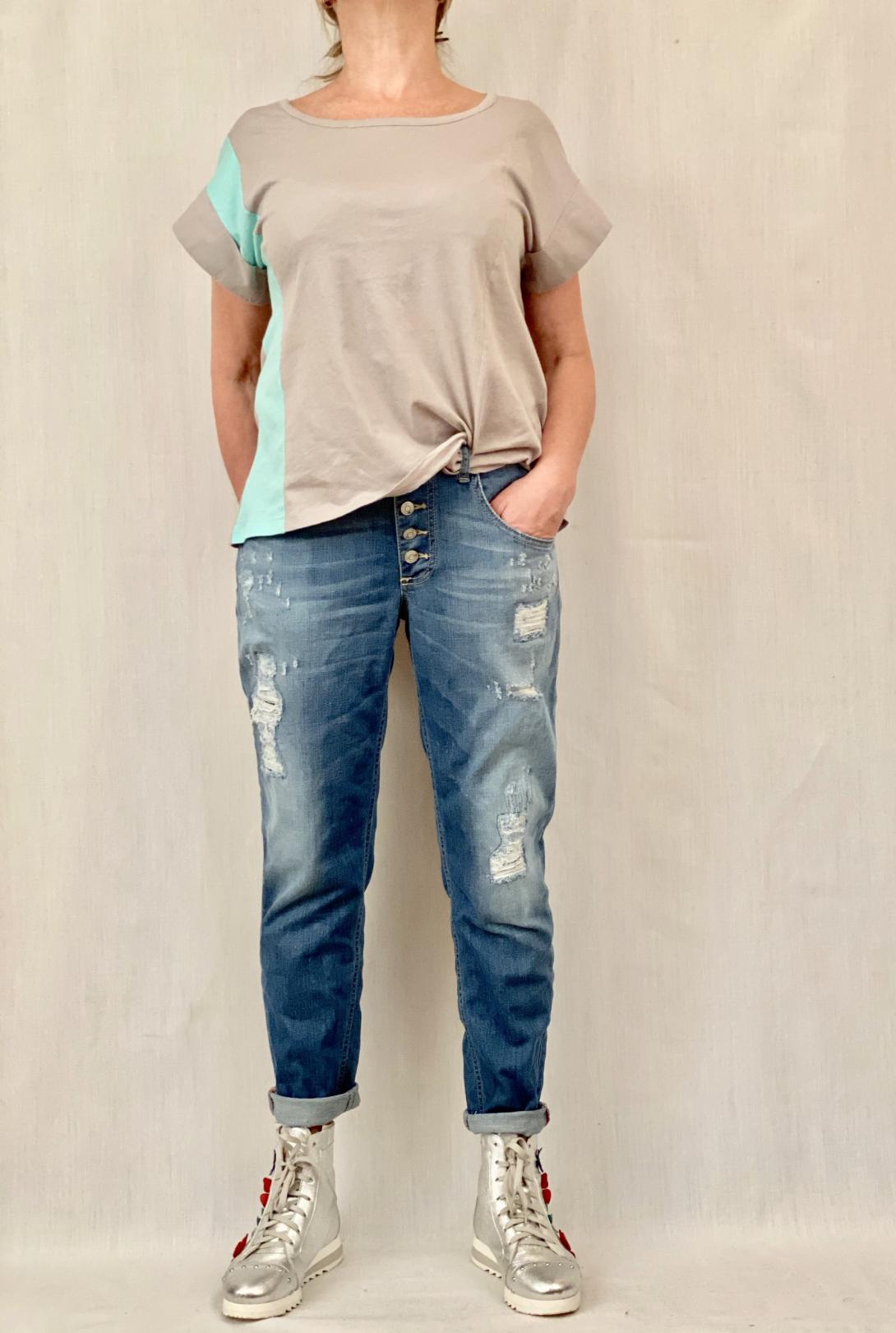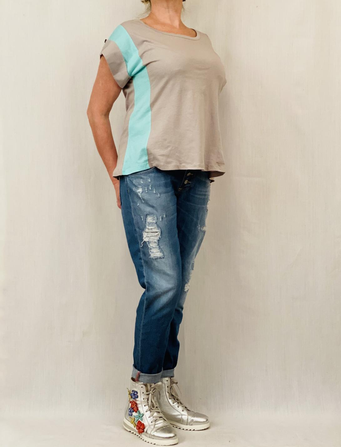 Футболка свободного кроя с ярой полоской цвета мяты. качественна одежда от итальянского бренда Manila Grace.
