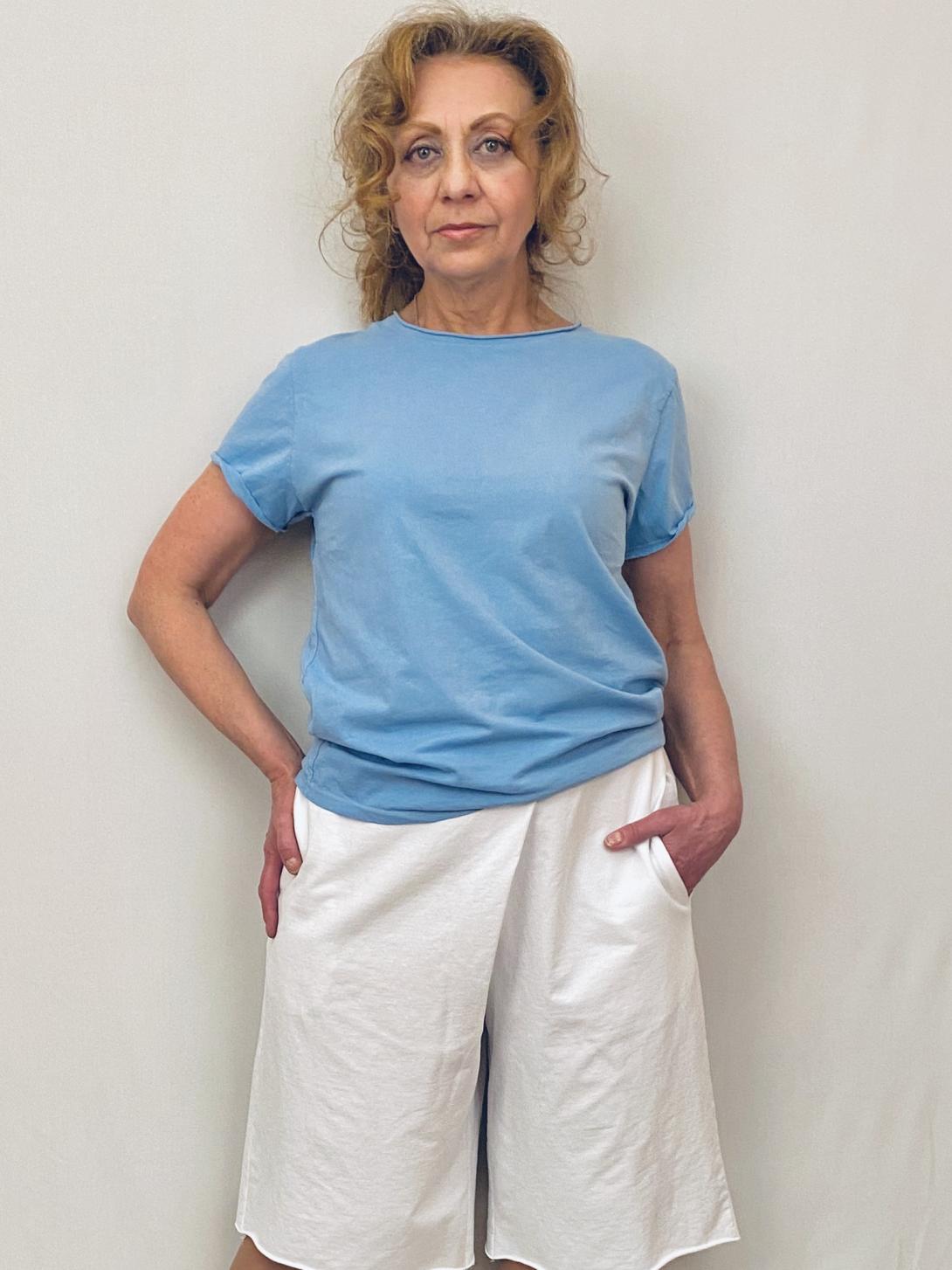 Стильная футболка с коротким рукавом красивого голубого цвета