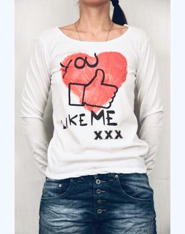 Белая футболка с длинным рукавом. Принт сердце .