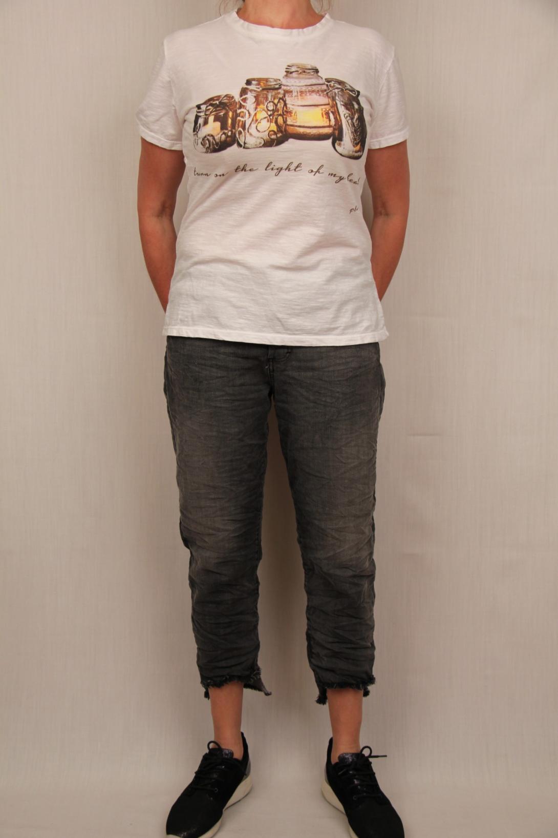 Классный принт, идеально подходит для всёй коллекции Итальянского бренда Please. Обратите внимание на укороченные джинсы слегка как-бы небрежно обрезаные...Это тренд сезона !