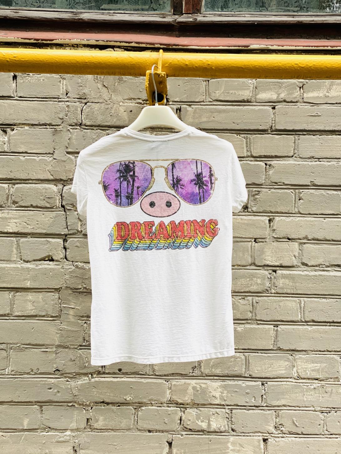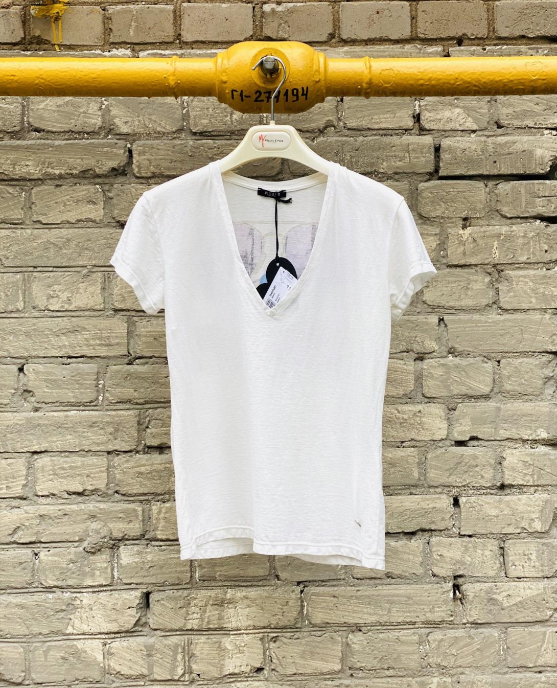 Отличная футболка с V -образным вырезом.Футболка с оригинальным принтом на спине.