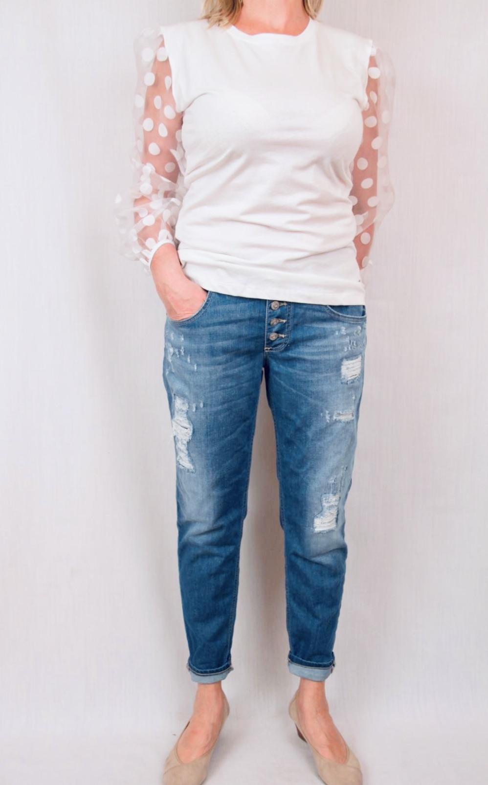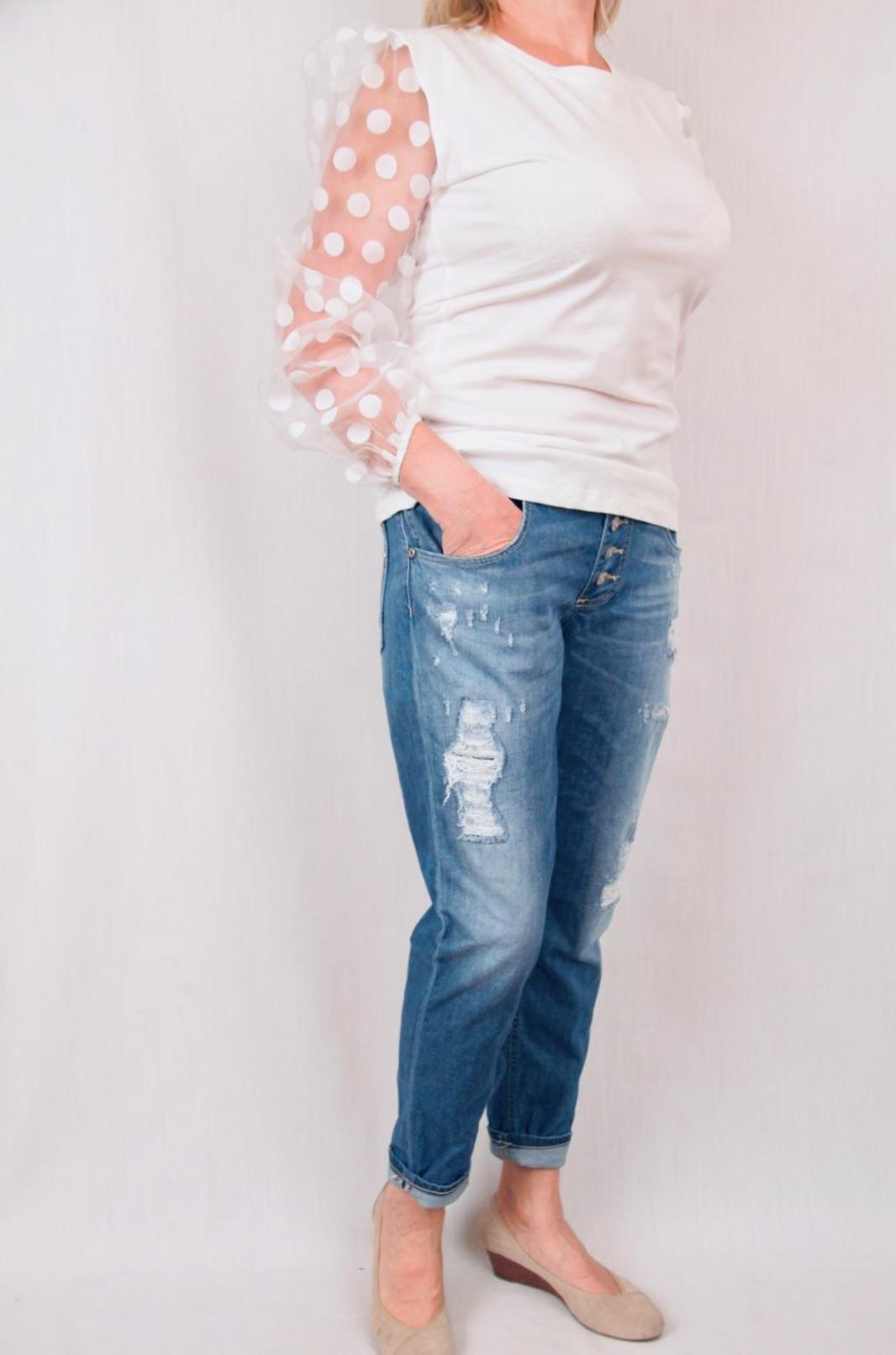 Красивая, эффектная футболка. в белом цвете. Рукав выполнен из органзы .