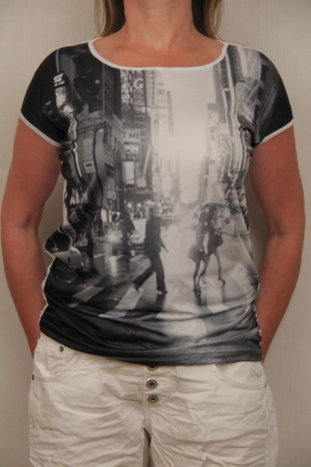 Футболка с принтом"город" ,спина однотоная .