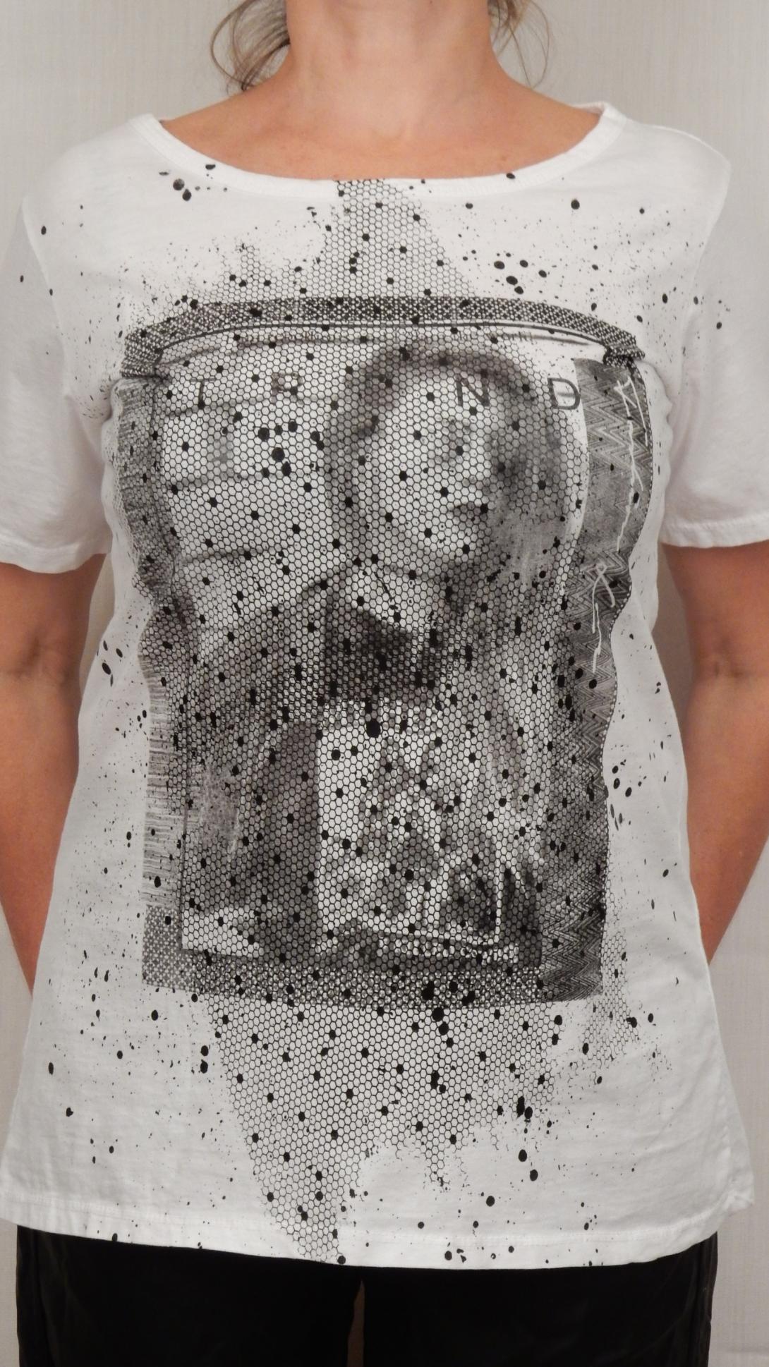 Классическая белая футболка с чёрным принтом. Футболка с коротким рукавом.