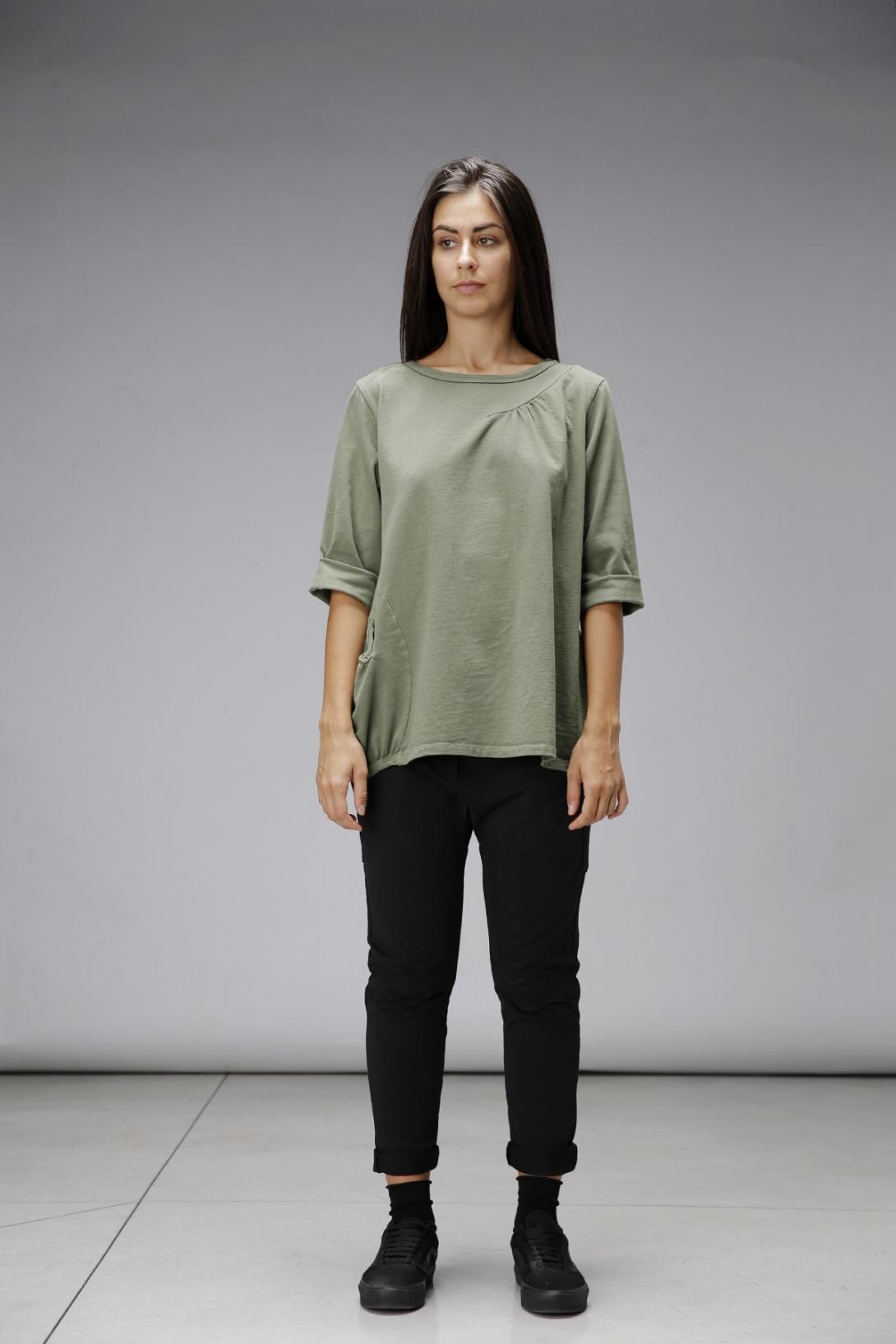Толстовка из фельпы или точнее..плотная футболка ассиметричная. Эту вещь лекго комбинировать с белой или цветной блузкой.