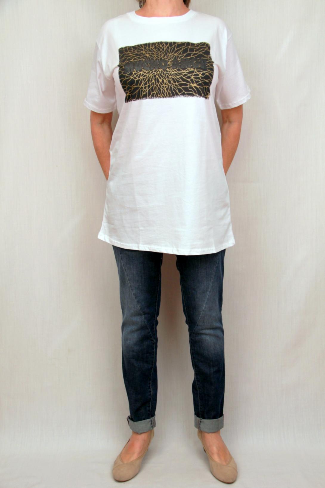 Футболка большого размера, с принтом, в чёрном и белом цвете. Футболка отличного качества.